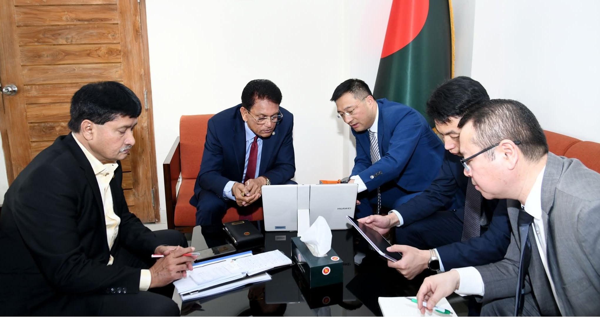 শিক্ষা মন্ত্রী ড. আ না ম এহছানুল হক মিলনের সঙ্গে ঢাকায় মন্ত্রণালয়ে তাঁর অফিসকক্ষে Huawei এর প্রতিনিধিদল সাক্ষাৎ