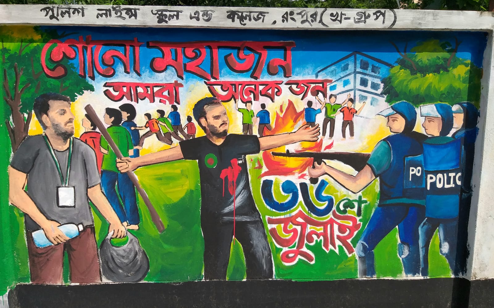 জুলাই গণভ্যুত্থান বর্ষপূর্তি পালন উপলক্ষে আয়োজিত “২৪ এর রঙে গ্রাফিতি ও চিত্রাংকন” এর স্থিরচিত্র পুলিশ লাইন্স স্কুল এন্ড কলেজ, রংপুর |