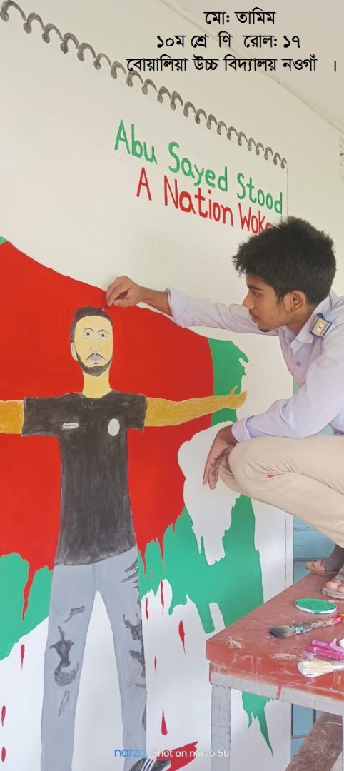 জুলাই গণভ্যুত্থান বর্ষপূর্তি পালন উপলক্ষে আয়োজিত “২৪ এর রঙে গ্রাফিতি ও চিত্রাংকন” এর স্থিরচিত্র রাশিদা বেগম মাধ্যমিক বিদ্যালয় |