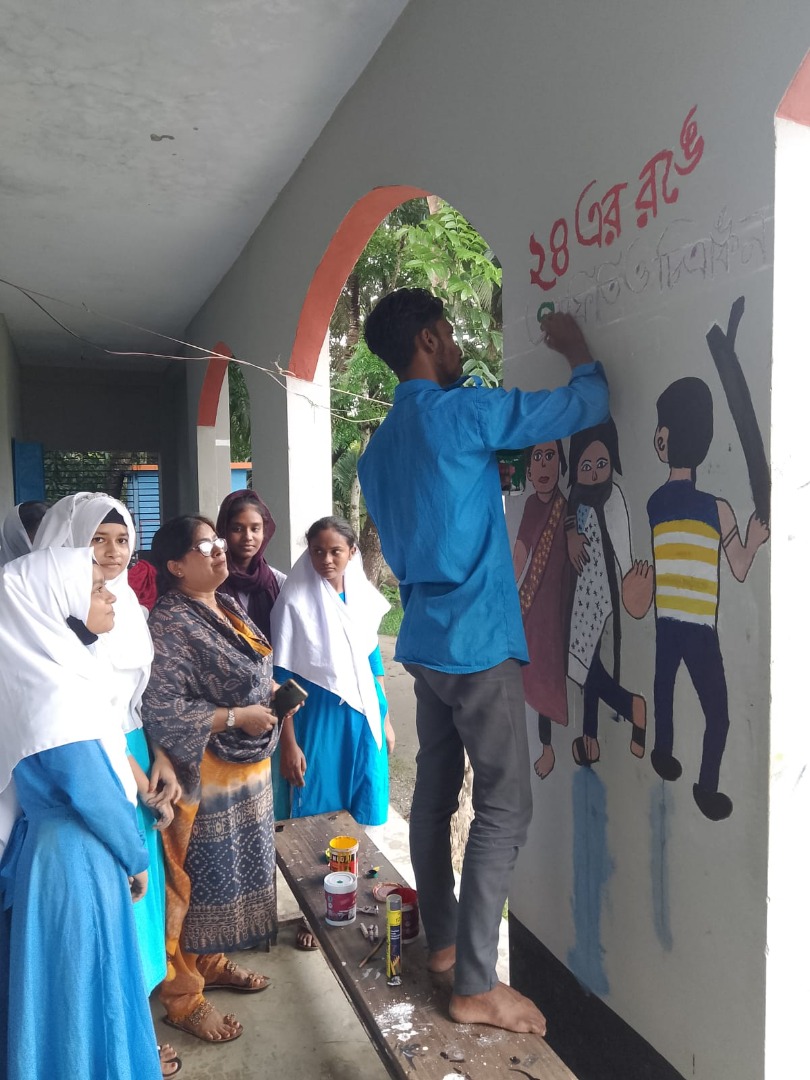 জুলাই গণভ্যুত্থান বর্ষপূর্তি পালন উপলক্ষে আয়োজিত “২৪ এর রঙে গ্রাফিতি ও চিত্রাংকন” এর স্থিরচিত্র গঙ্গারামপুর মাধ্যমিক বালিকা বিদ্যালয় |