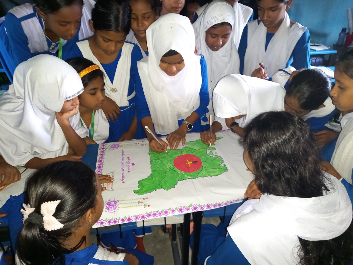 জুলাই গণভ্যুত্থান বর্ষপূর্তি পালন উপলক্ষে আয়োজিত “২৪ এর রঙে গ্রাফিতি ও চিত্রাংকন” এর স্থিরচিত্র বারবাকপুর বালিকা মাধ্যমিক বিদ্যালয় |