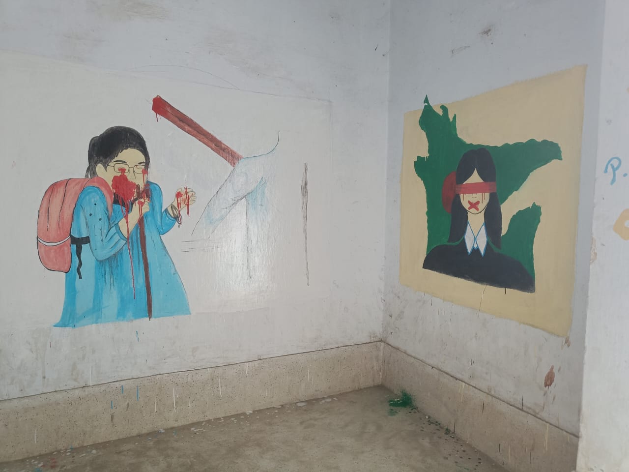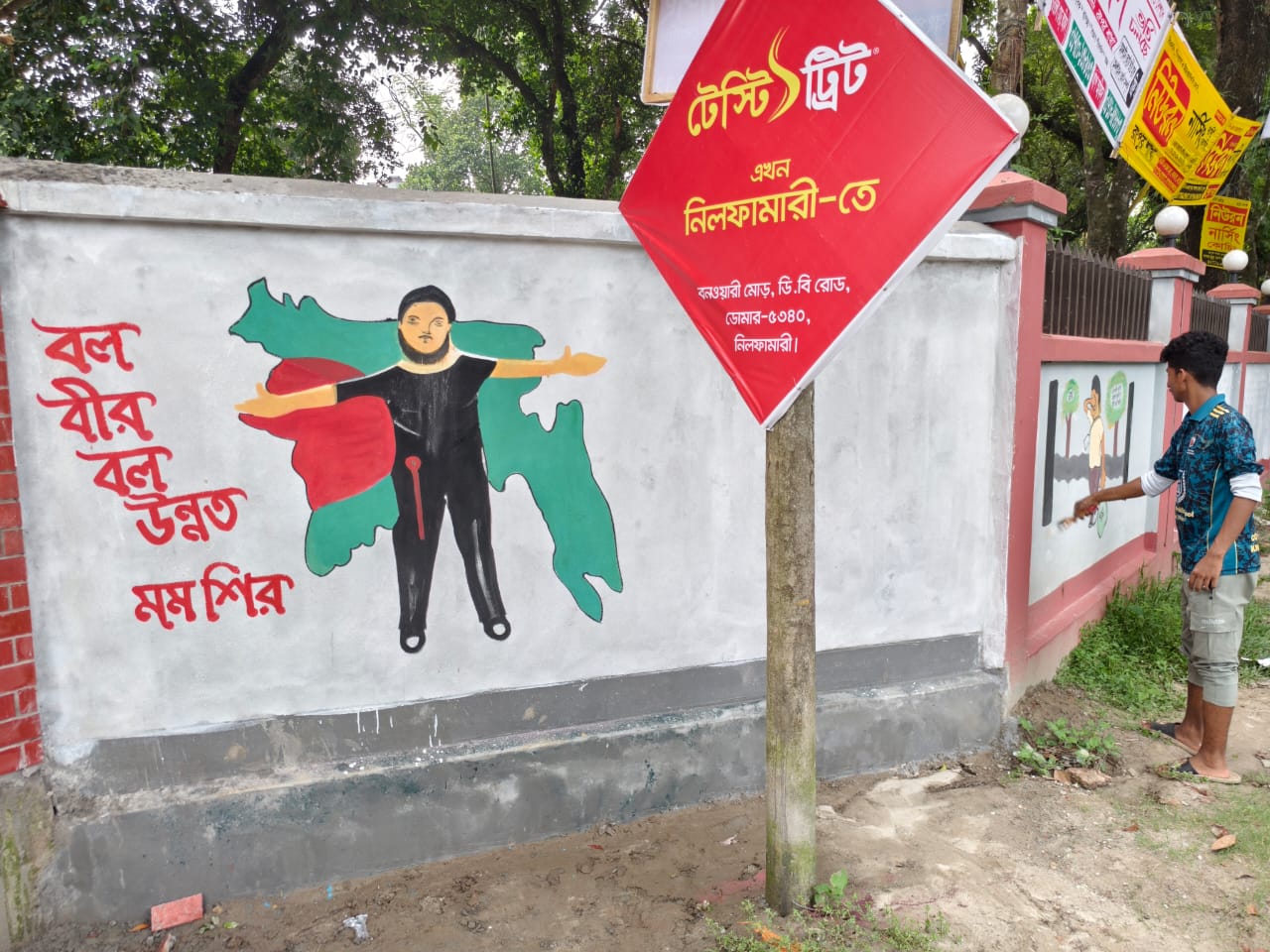 জুলাই গণভ্যুত্থান বর্ষপূর্তি পালন উপলক্ষে আয়োজিত “২৪ এর রঙে গ্রাফিতি ও চিত্রাংকন” এর স্থিরচিত্র ডোমার সরকারি মহিলা কলেজ |