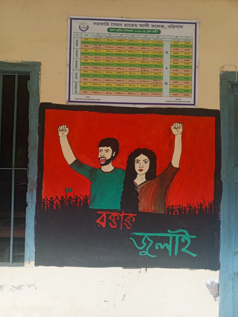 জুলাই গণভ্যুত্থান বর্ষপূর্তি পালন উপলক্ষে আয়োজিত “২৪ এর রঙে গ্রাফিতি ও চিত্রাংকন” এর স্থিরচিত্র সরকারি হাতেম আলী কলেজ, বরিশাল |