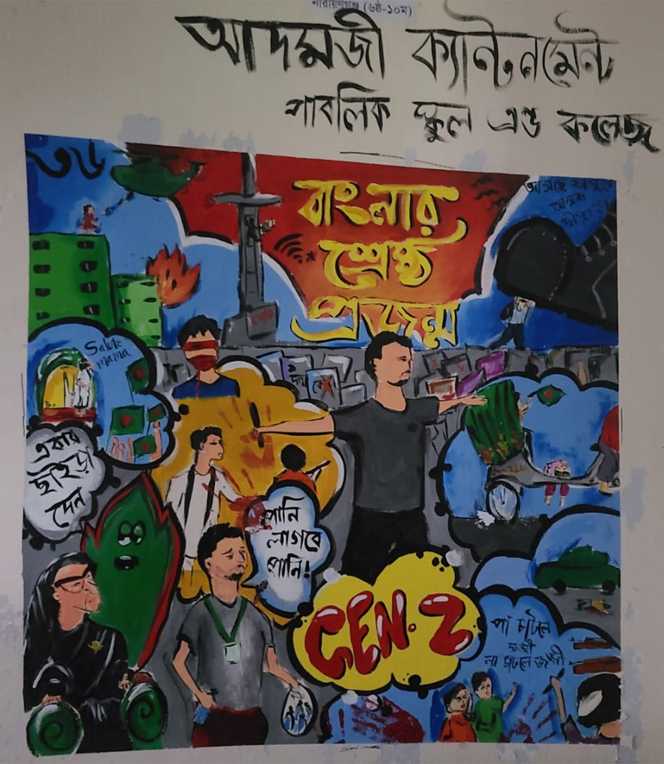 জুলাই গণভ্যুত্থান বর্ষপূর্তি পালন উপলক্ষে আয়োজিত “২৪ এর রঙে গ্রাফিতি ও চিত্রাংকন” এর স্থিরচিত্র আদমজী ক্যান্টনমেন্ট পাবলিক স্কুল এন্ড কলেজ |