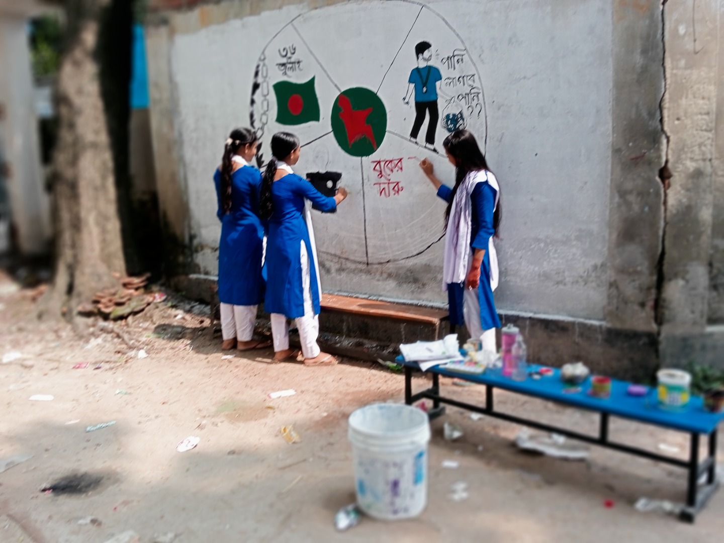 জুলাই গণভ্যুত্থান বর্ষপূর্তি পালন উপলক্ষে আয়োজিত “২৪ এর রঙে গ্রাফিতি ও চিত্রাংকন” এর স্থিরচিত্র ইন্দাহার বালিকা উচ্চ বিদ্যালয় |