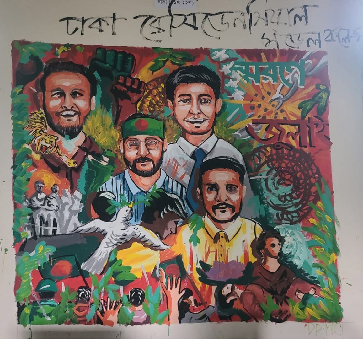 জুলাই গণভ্যুত্থান বর্ষপূর্তি পালন উপলক্ষে আয়োজিত “২৪ এর রঙে গ্রাফিতি ও চিত্রাংকন” এর স্থিরচিত্র ঢাকা রেসিডেনসিয়াল মডেল কলেজ |