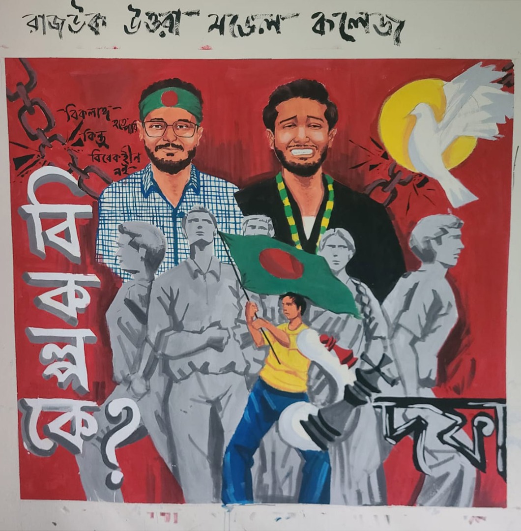 জুলাই গণভ্যুত্থান বর্ষপূর্তি পালন উপলক্ষে আয়োজিত “২৪ এর রঙে গ্রাফিতি ও চিত্রাংকন” এর স্থিরচিত্র রাজউক উত্তরা মডেল কলেজ |