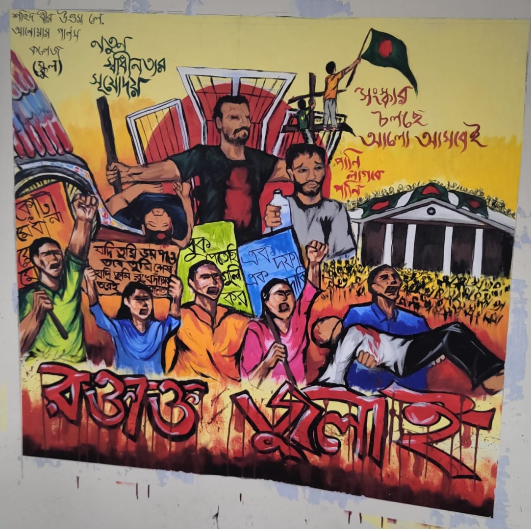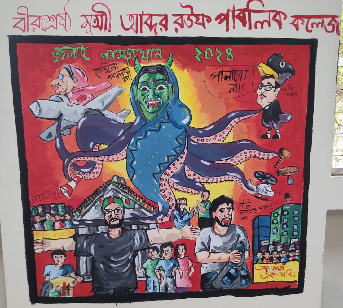 জুলাই গণভ্যুত্থান বর্ষপূর্তি পালন উপলক্ষে আয়োজিত “২৪ এর রঙে গ্রাফিতি ও চিত্রাংকন” এর স্থিরচিত্র বীরশ্রেষ্ঠ মুন্সী আব্দুর রউফ পাবলিক কলেজ |