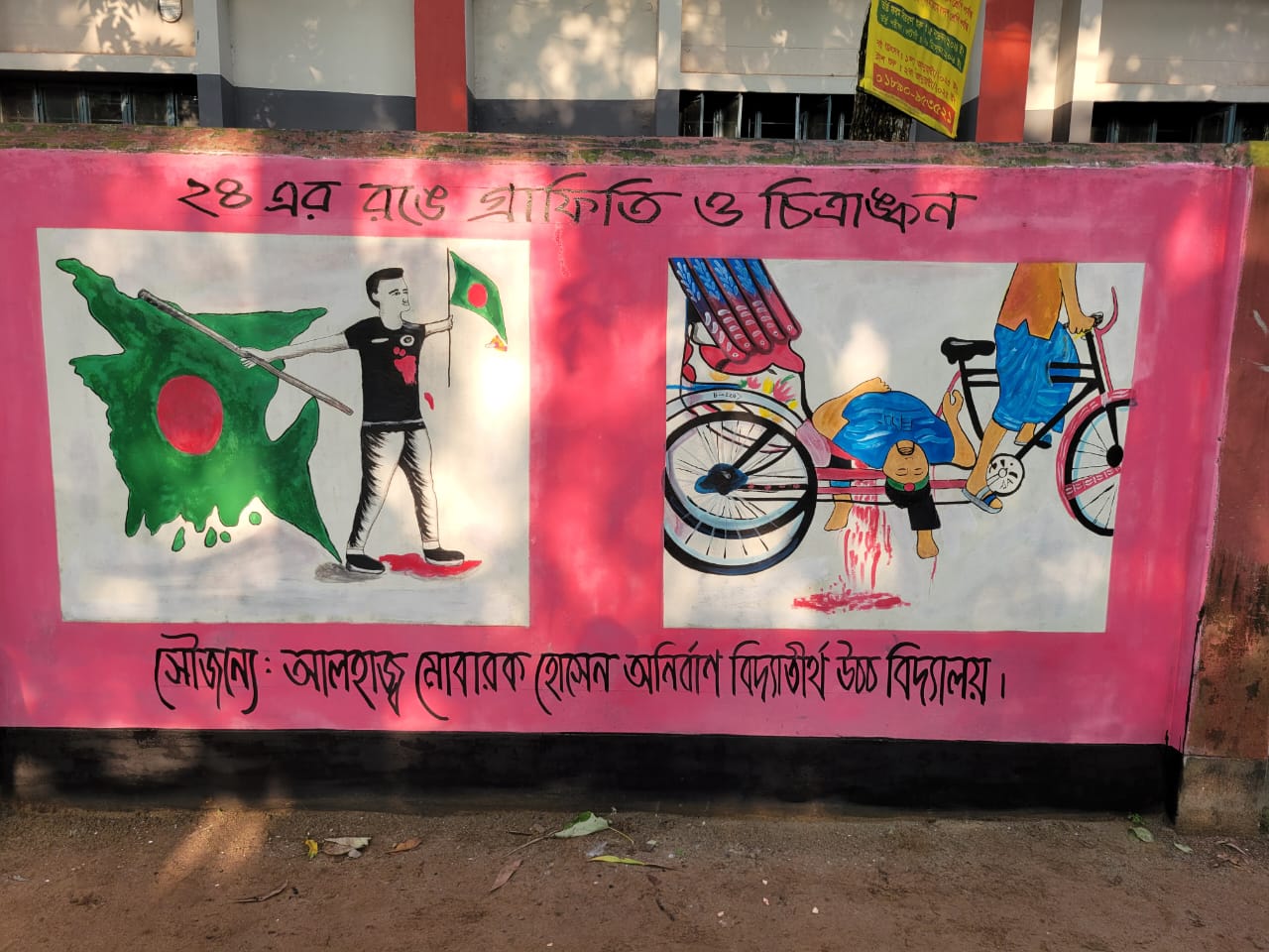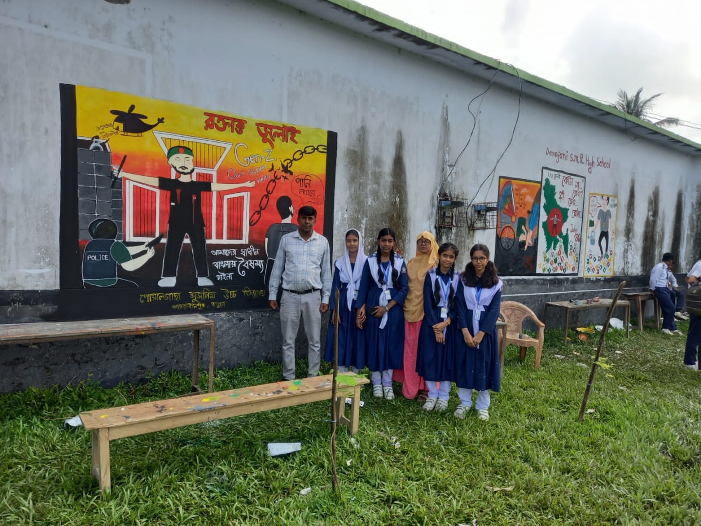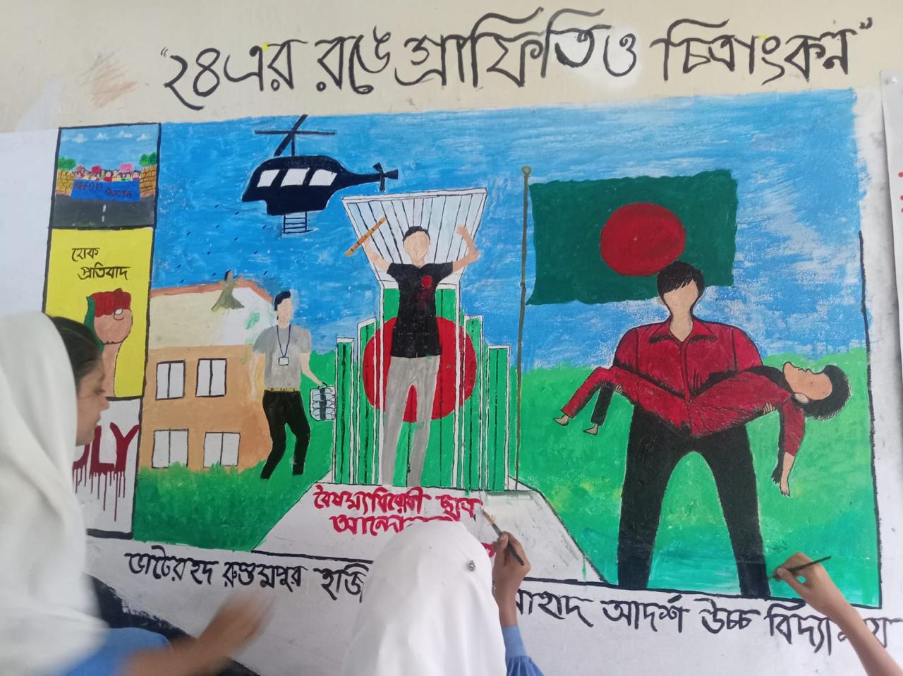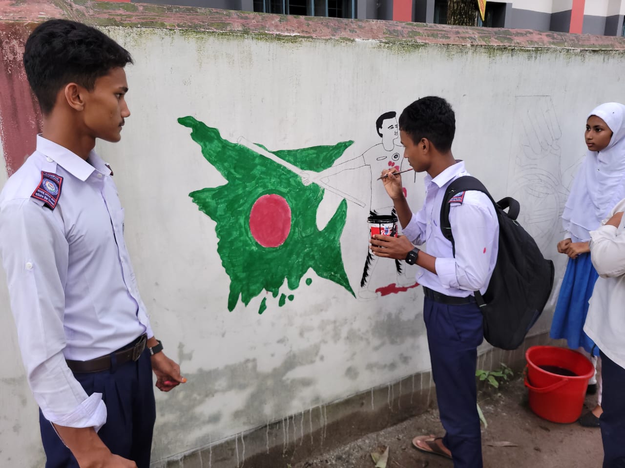 জুলাই গণভ্যুত্থান বর্ষপূর্তি পালন উপলক্ষে আয়োজিত “২৪ এর রঙে গ্রাফিতি ও চিত্রাংকন” এর স্থিরচিত্র দক্ষিণ-পশ্চিম বাকলিয়া উচ্চ বিদ্যালয় |