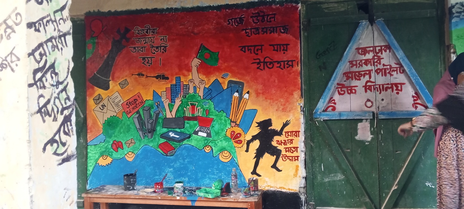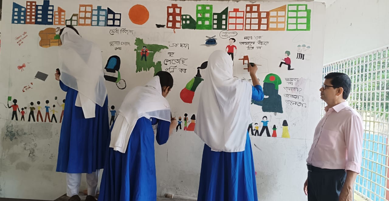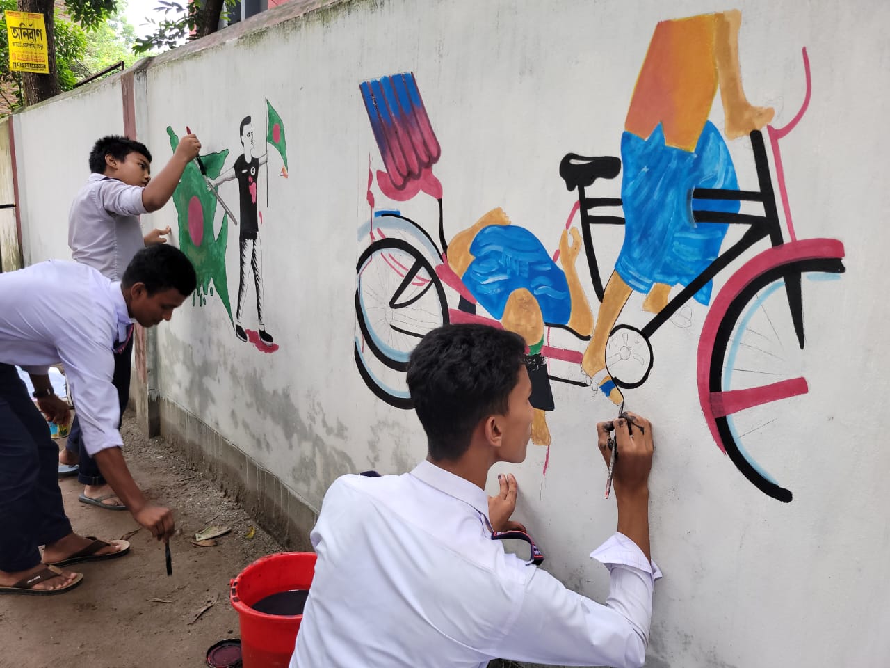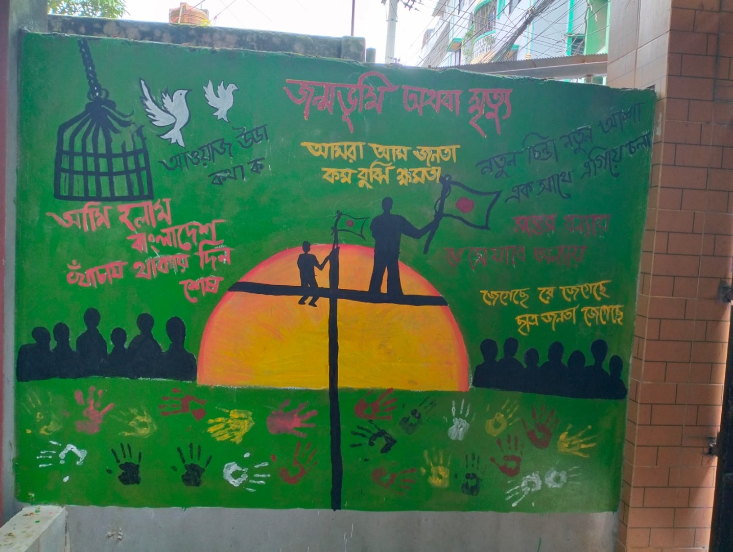 জুলাই গণভ্যুত্থান বর্ষপূর্তি পালন উপলক্ষে আয়োজিত “২৪ এর রঙে গ্রাফিতি ও চিত্রাংকন” এর স্থিরচিত্র দক্ষিণ-পশ্চিম বাকলিয়া উচ্চ বিদ্যালয় |