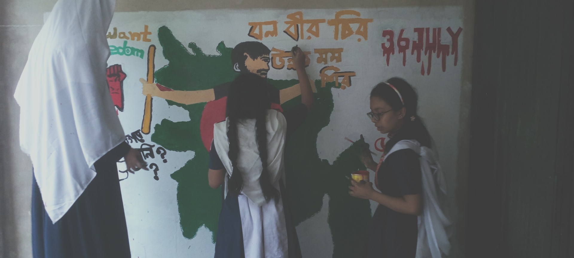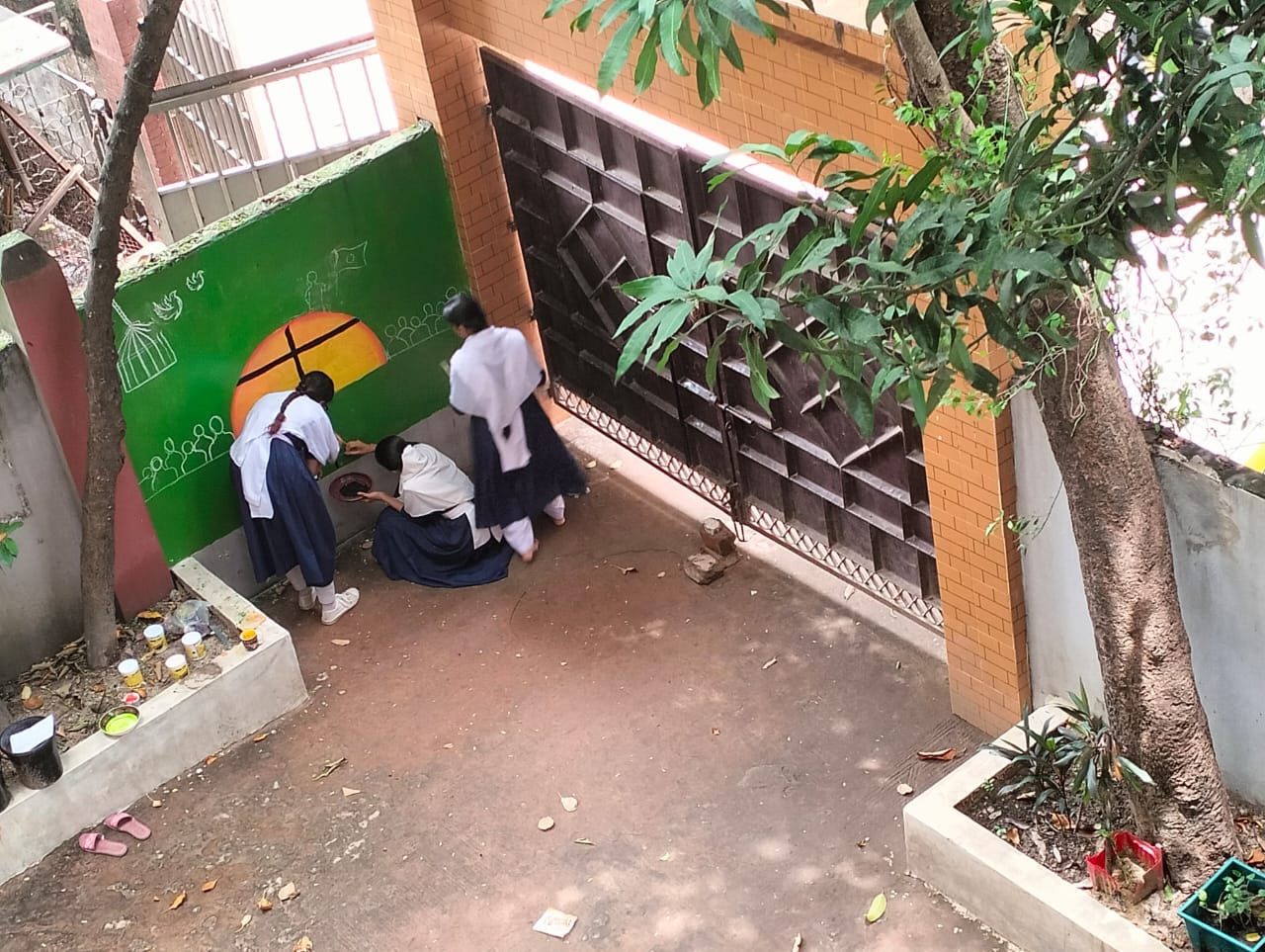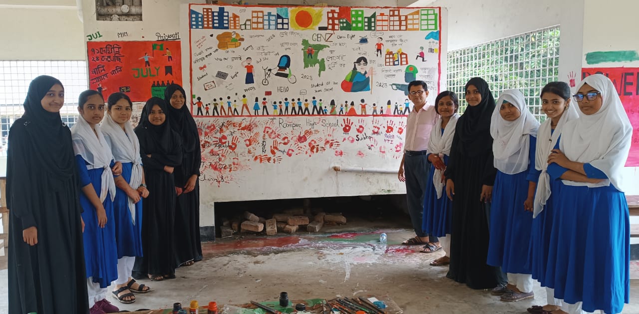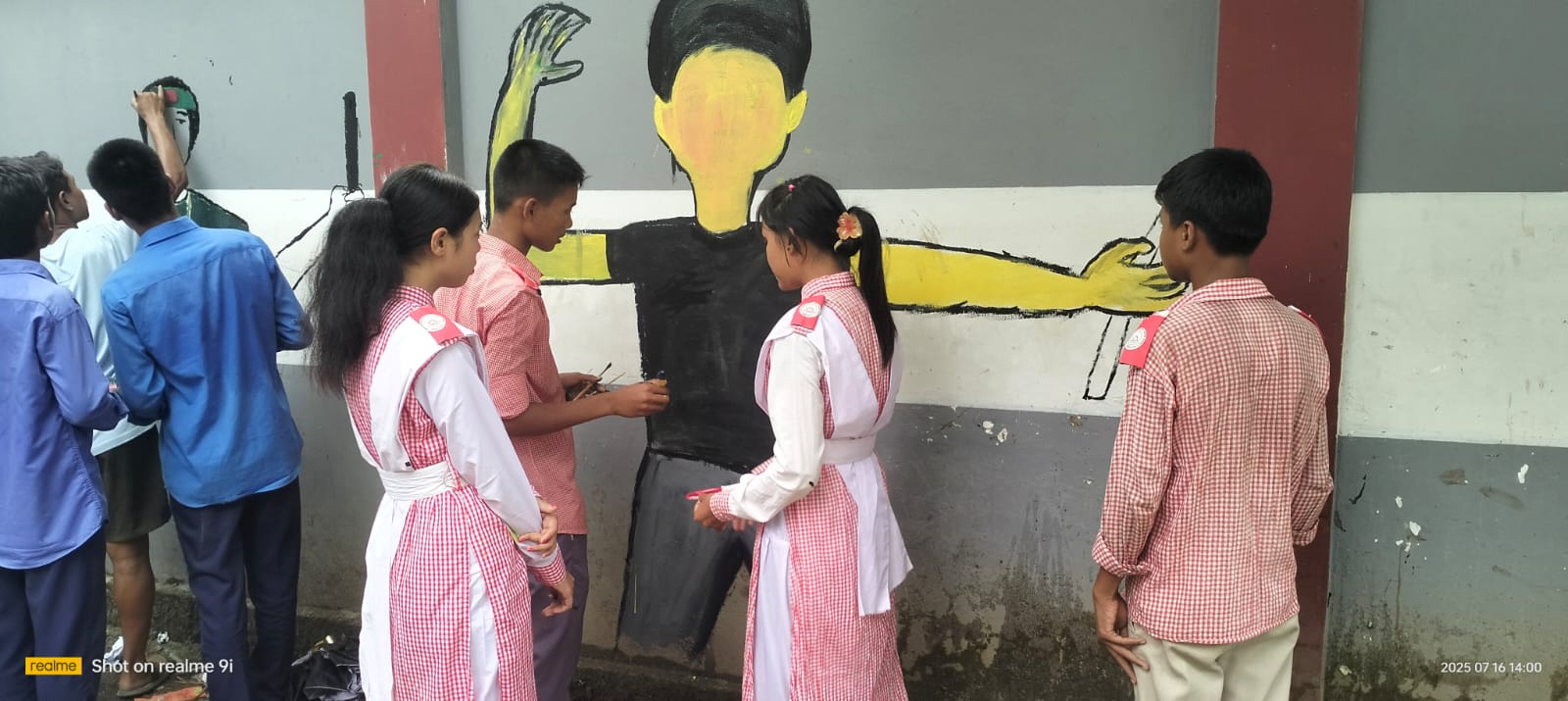 জুলাই গণভ্যুত্থান বর্ষপূর্তি পালন উপলক্ষে আয়োজিত “২৪ এর রঙে গ্রাফিতি ও চিত্রাংকন” এর স্থিরচিত্র দক্ষিণ-পশ্চিম বাকলিয়া উচ্চ বিদ্যালয় |