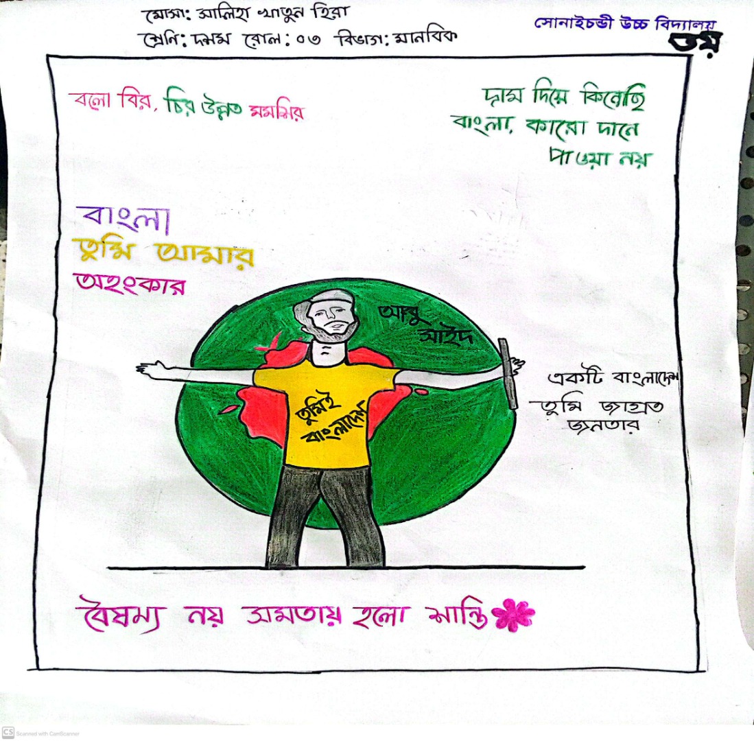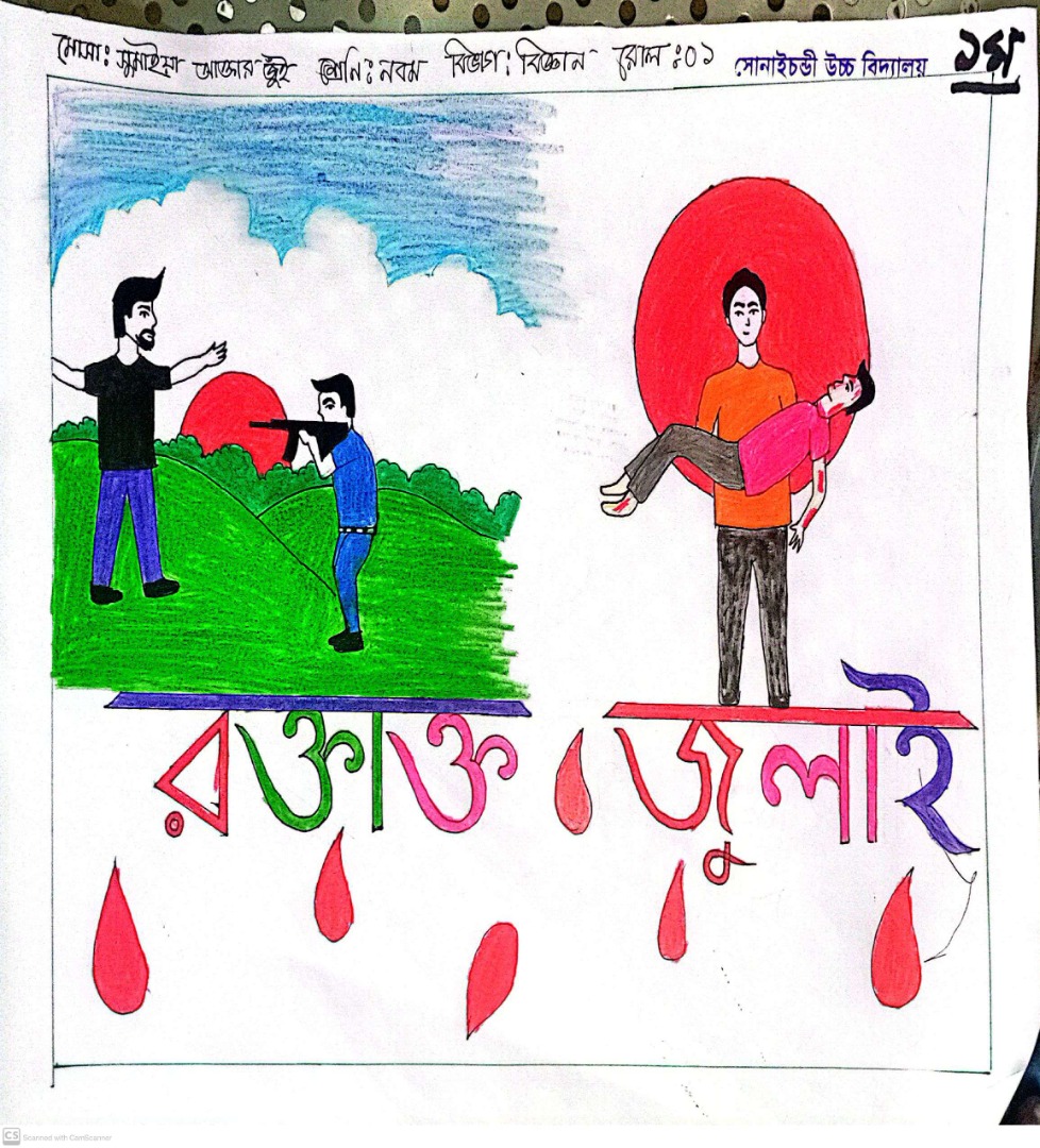জুলাই গণভ্যুত্থান বর্ষপূর্তি পালন উপলক্ষে আয়োজিত “২৪ এর রঙে গ্রাফিতি ও চিত্রাংকন” এর স্থিরচিত্র সোনাইচন্ডী উচ্চ বিদ্যালয়, নাচোল, চাঁপাইনবাবগঞ্জ |