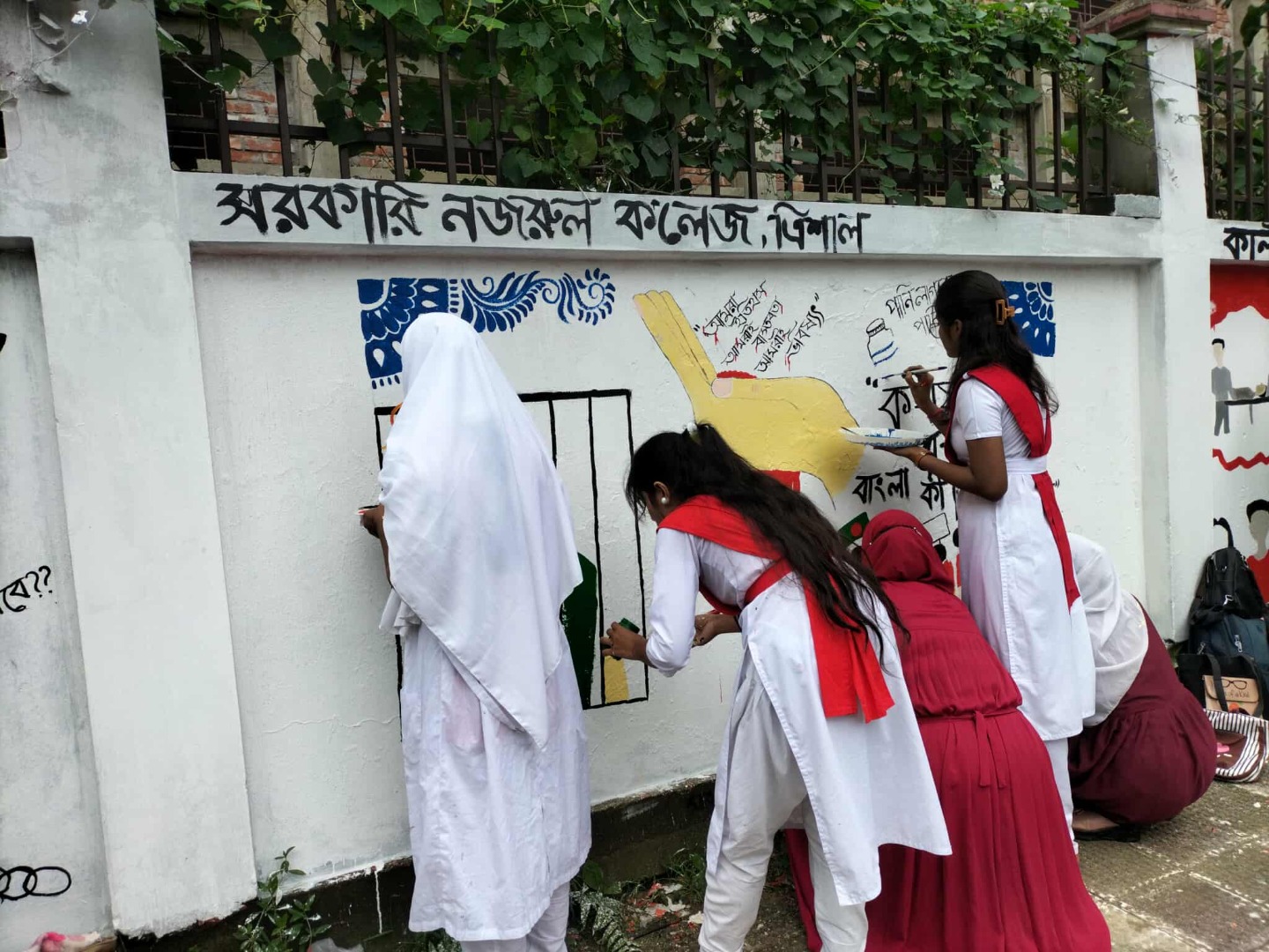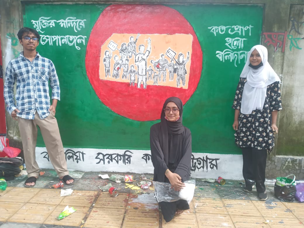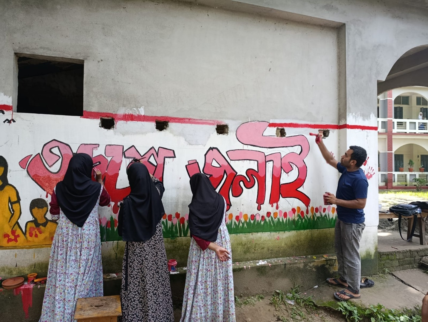 জুলাই গণভ্যুত্থান বর্ষপূর্তি পালন উপলক্ষে আয়োজিত “২৪ এর রঙে গ্রাফিতি ও চিত্রাংকন” এর স্থিরচিত্র ব্রাহ্মণবাড়িয়া সরকারি মহিলা কলেজ |