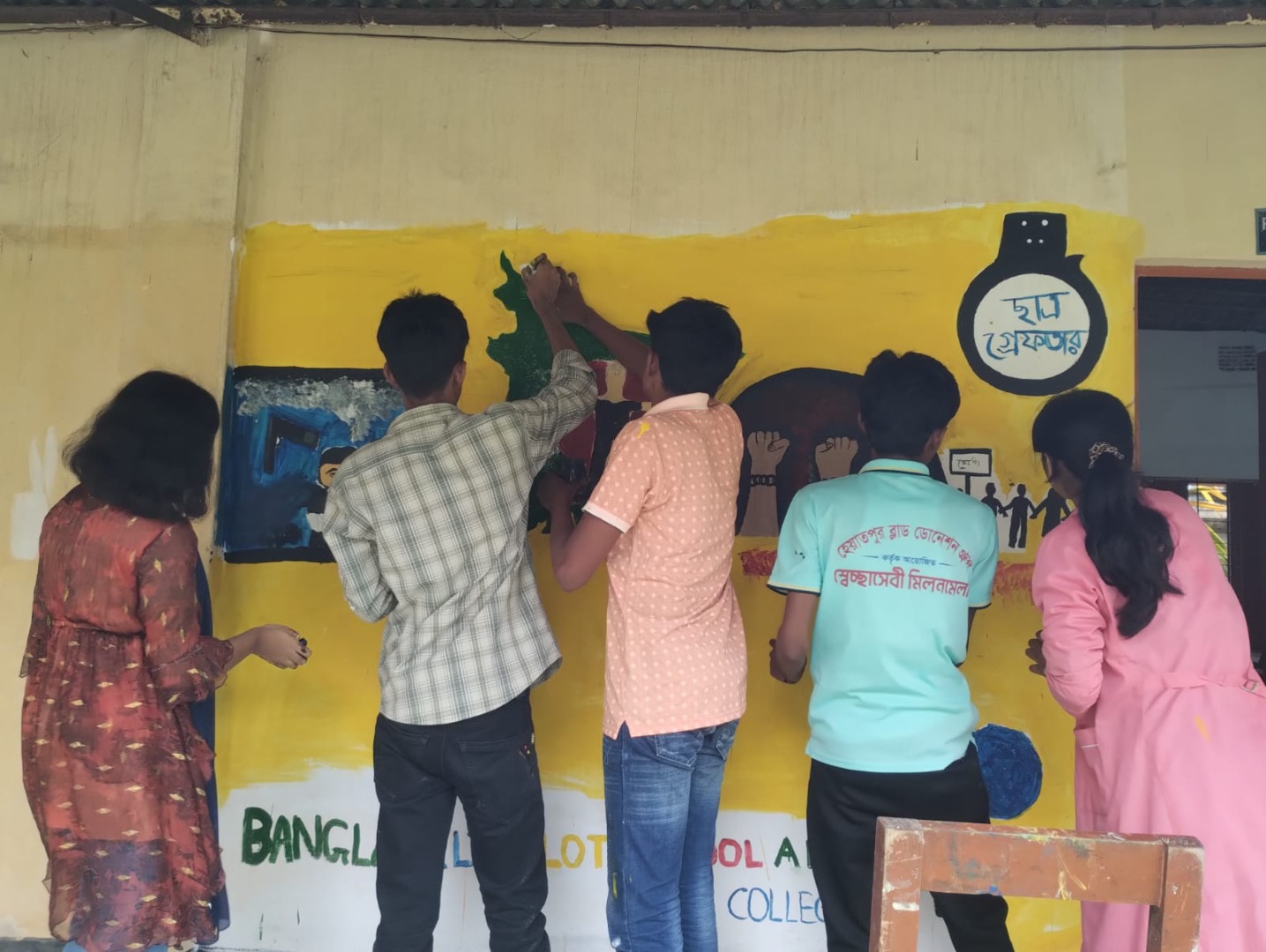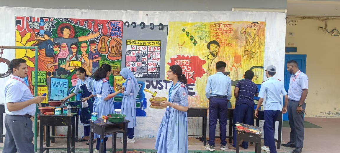 জুলাই গণভ্যুত্থান বর্ষপূর্তি পালন উপলক্ষে আয়োজিত “২৪ এররঙে গ্রাফিতি ও চিত্রাংকন” এর স্থিরচিত্র বাংলা হিলি পাইলট স্কুল অ্যান্ড কলেজ |