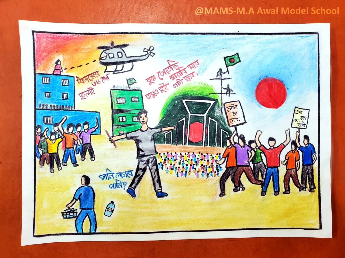 জুলাই গণভ্যুত্থান বর্ষপূর্তি পালন উপলক্ষে আয়োজিত “২৪ এররঙে গ্রাফিতি ও চিত্রাংকন” এর স্থিরচিত্র এম.এ. আউয়াল মডেল স্কুল অ্যান্ড কলেজ |