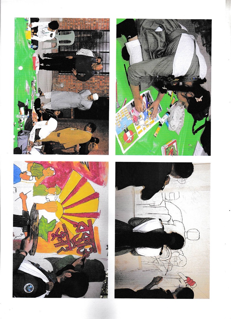 জুলাই গণভ্যুত্থান বর্ষপূর্তি পালন উপলক্ষে আয়োজিত “২৪ এর রঙে গ্রাফিতি ও চিত্রাংকন” এর স্থিরচিত্র সরকারি নাজির আখতার কলেজ সোনাতলা, বগুড়ায় |