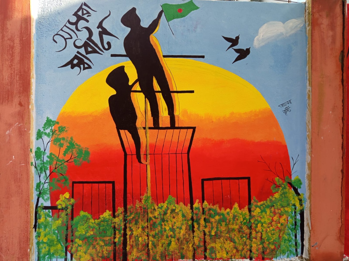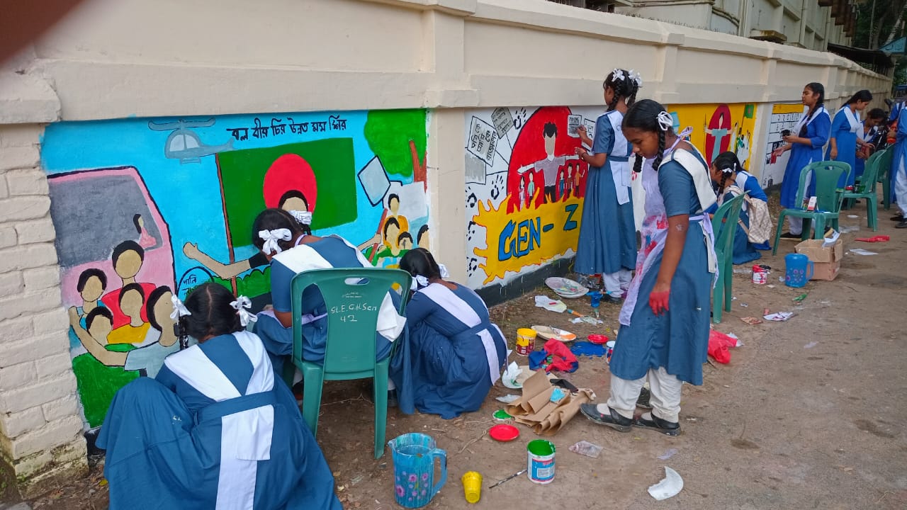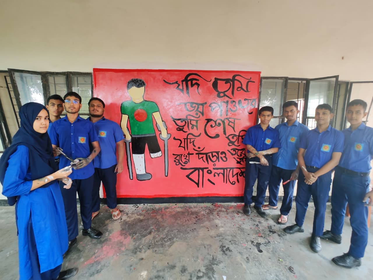 জুলাই গণভ্যুত্থান বর্ষপূর্তি পালন উপলক্ষে আয়োজিত “২৪ এররঙে গ্রাফিতি ও চিত্রাংকন” এর স্থিরচিত্র শহীদ বীর উত্তম লেঃ আনোয়ার গার্লস কলেজ