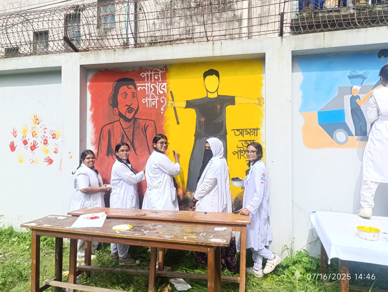 জুলাই গণভ্যুত্থান বর্ষপূর্তি পালন উপলক্ষে আয়োজিত “২৪ এর রঙে গ্রাফিতি ও চিত্রাংকন” এর স্থিরচিত্র ঢাকা মহানগর মহিলা কলেজ |