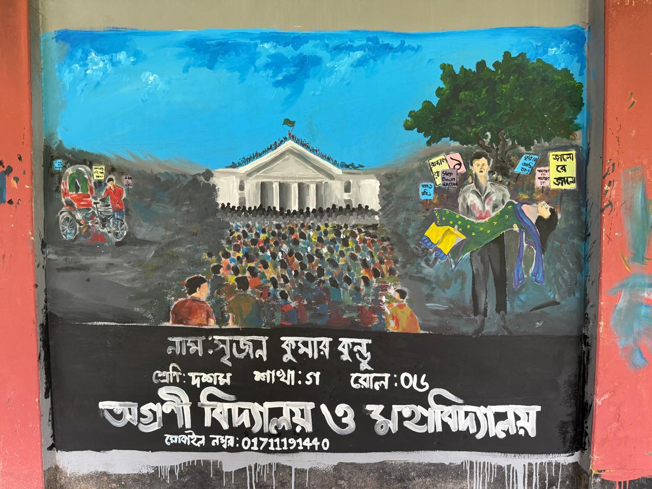 জুলাই গণভ্যুত্থান বর্ষপূর্তি পালন উপলক্ষে আয়োজিত “২৪ এর রঙে গ্রাফিতি ও চিত্রাংকন” এর স্থিরচিত্র অগ্রণী বিদ্যালয় ও মহাবিদ্যালয় |