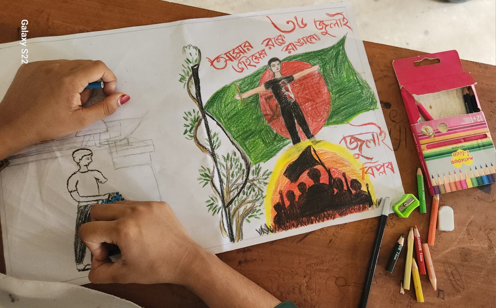 জুলাই গণভ্যুত্থান বর্ষপূর্তি পালন উপলক্ষে আয়োজিত “২৪ এররঙে গ্রাফিতি ও চিত্রাংকন” এর স্থিরচিত্র নবারুণ উচ্চ বালিকা বিদ্যালয় |