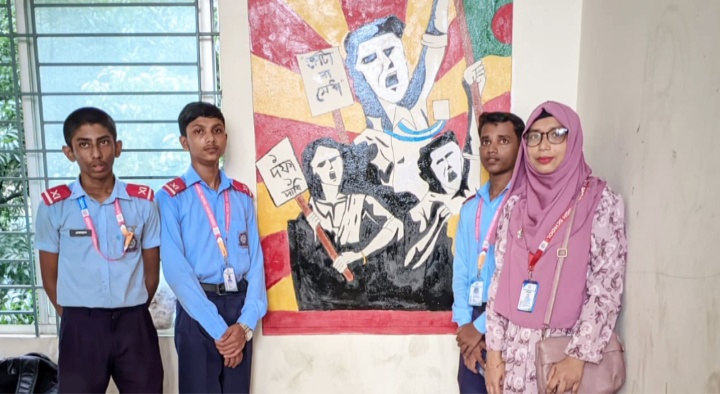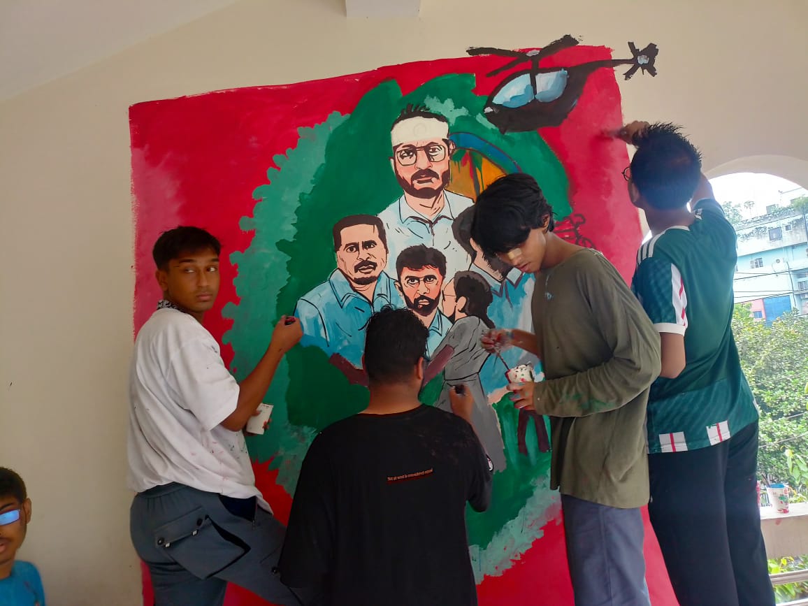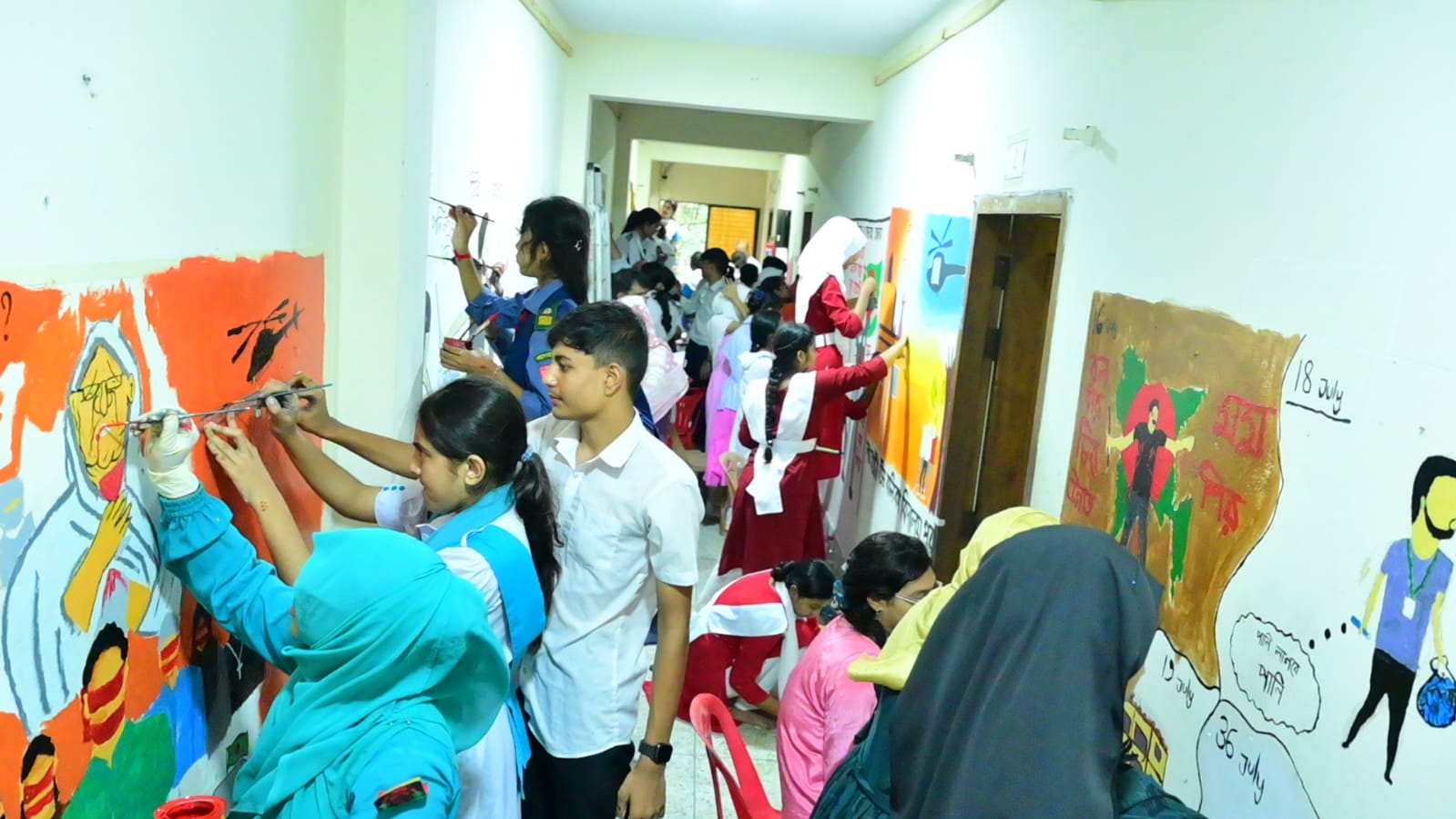 জুলাই গণভ্যুত্থান বর্ষপূর্তি পালন উপলক্ষে আয়োজিত “২৪ এররঙে গ্রাফিতি ও চিত্রাংকন” এর স্থিরচিত্র মহাখালী মডেল হাই স্কুল |
