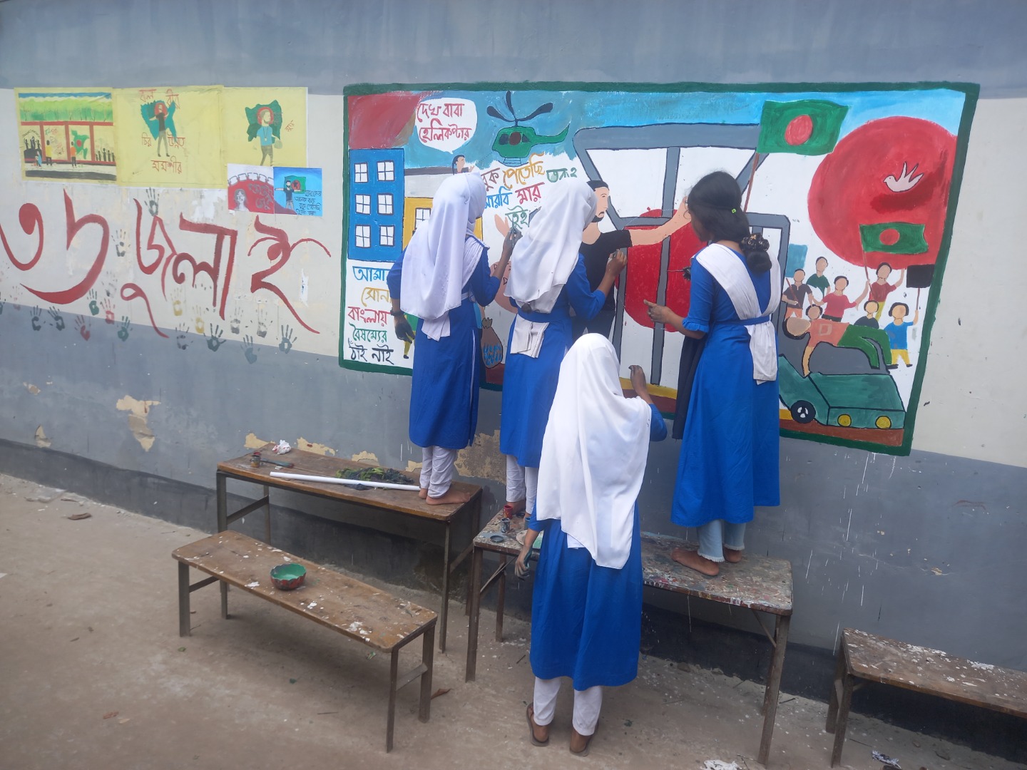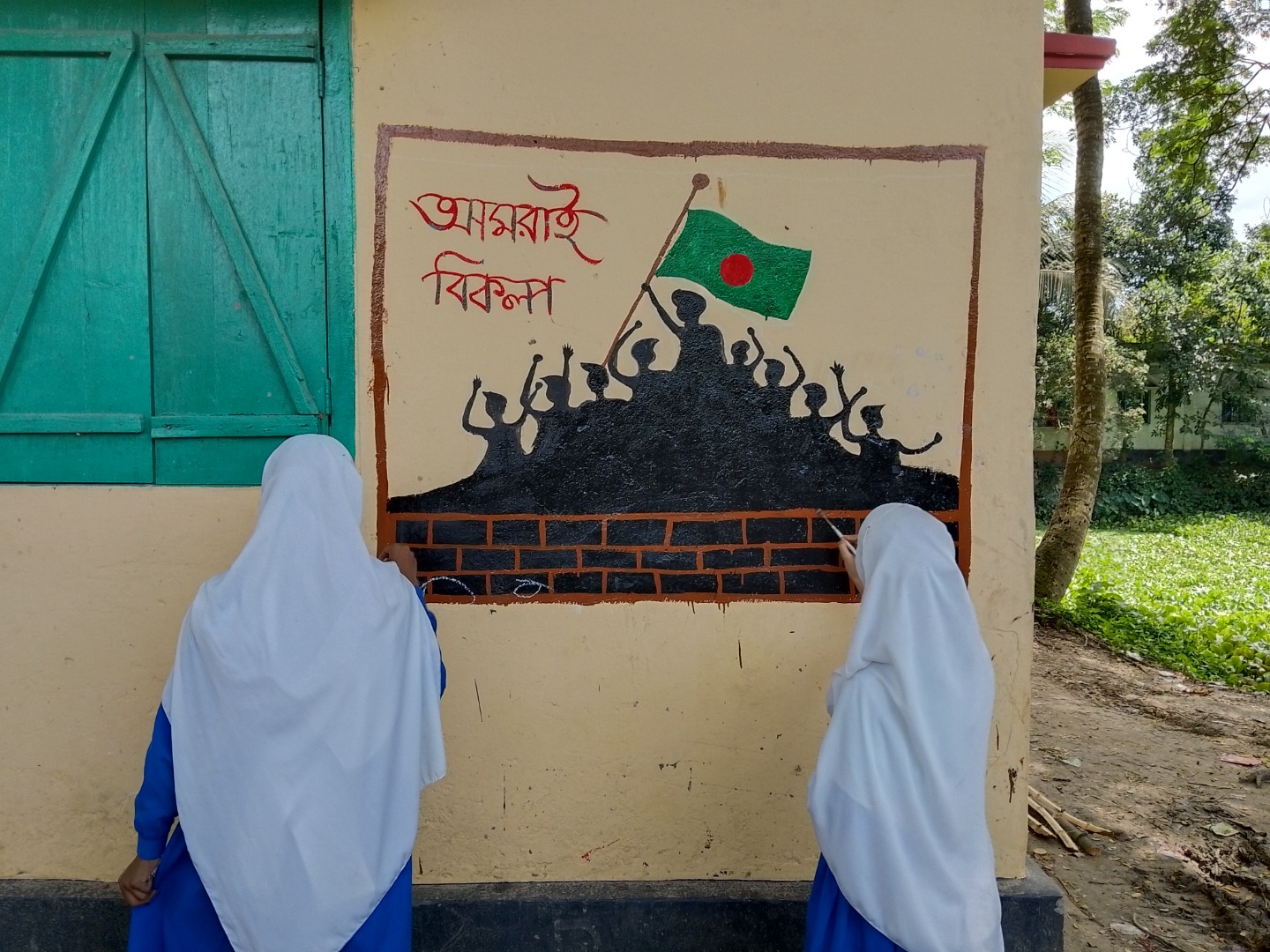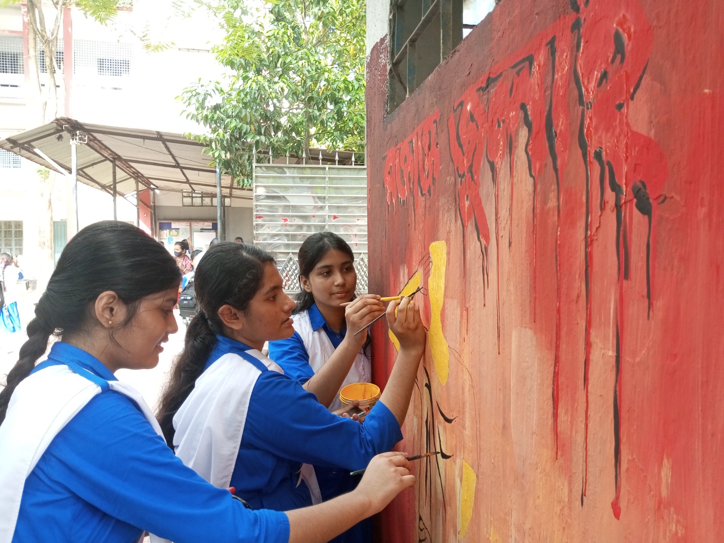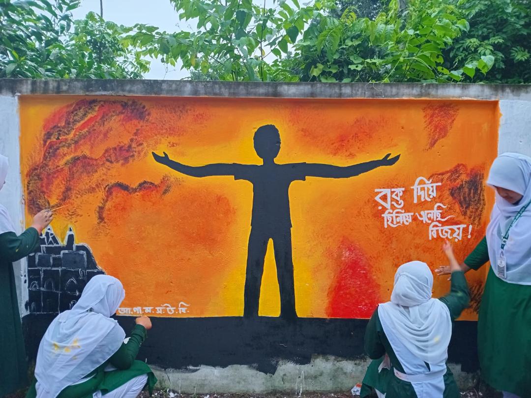 জুলাই গণভ্যুত্থান বর্ষপূর্তি পালন উপলক্ষে আয়োজিত “২৪ এররঙে গ্রাফিতি ও চিত্রাংকন” এর স্থিরচিত্র পারকৃষ্ণগোবিন্দপুর বালিকা উচ্চ বিদ্যালয় |