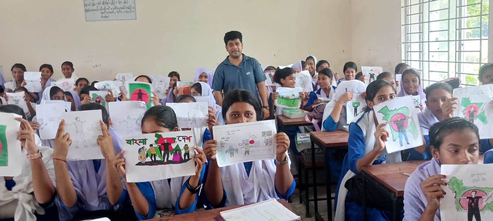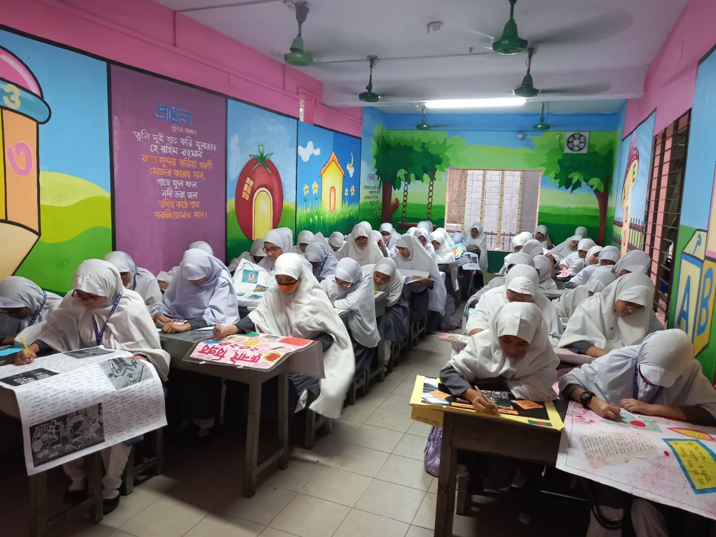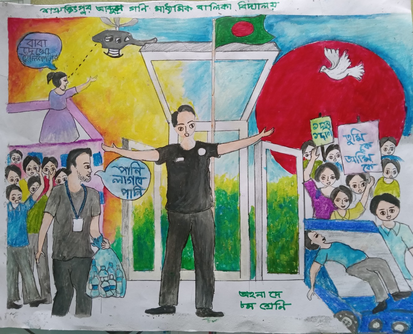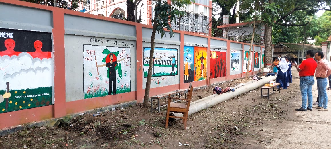 জুলাই গণভ্যুত্থান বর্ষপূর্তি পালন উপলক্ষে আয়োজিত “২৪ এররঙে গ্রাফিতি ও চিত্রাংকন” এর স্থিরচিত্র পারকৃষ্ণগোবিন্দপুর বালিকা উচ্চ বিদ্যালয় |