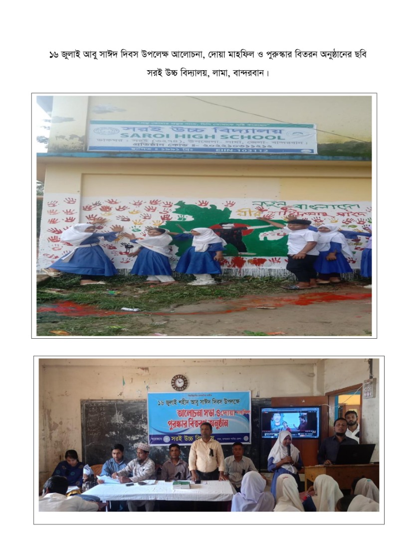 জুলাই গণভ্যুত্থান বর্ষপূর্তি পালন উপলক্ষে আয়োজিত “২৪ এররঙে গ্রাফিতি ও চিত্রাংকন” এর স্থিরচিত্র সরই উচ্চ বিদ্যালয়, লামা, বান্দরবন |