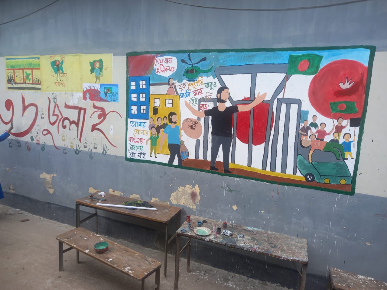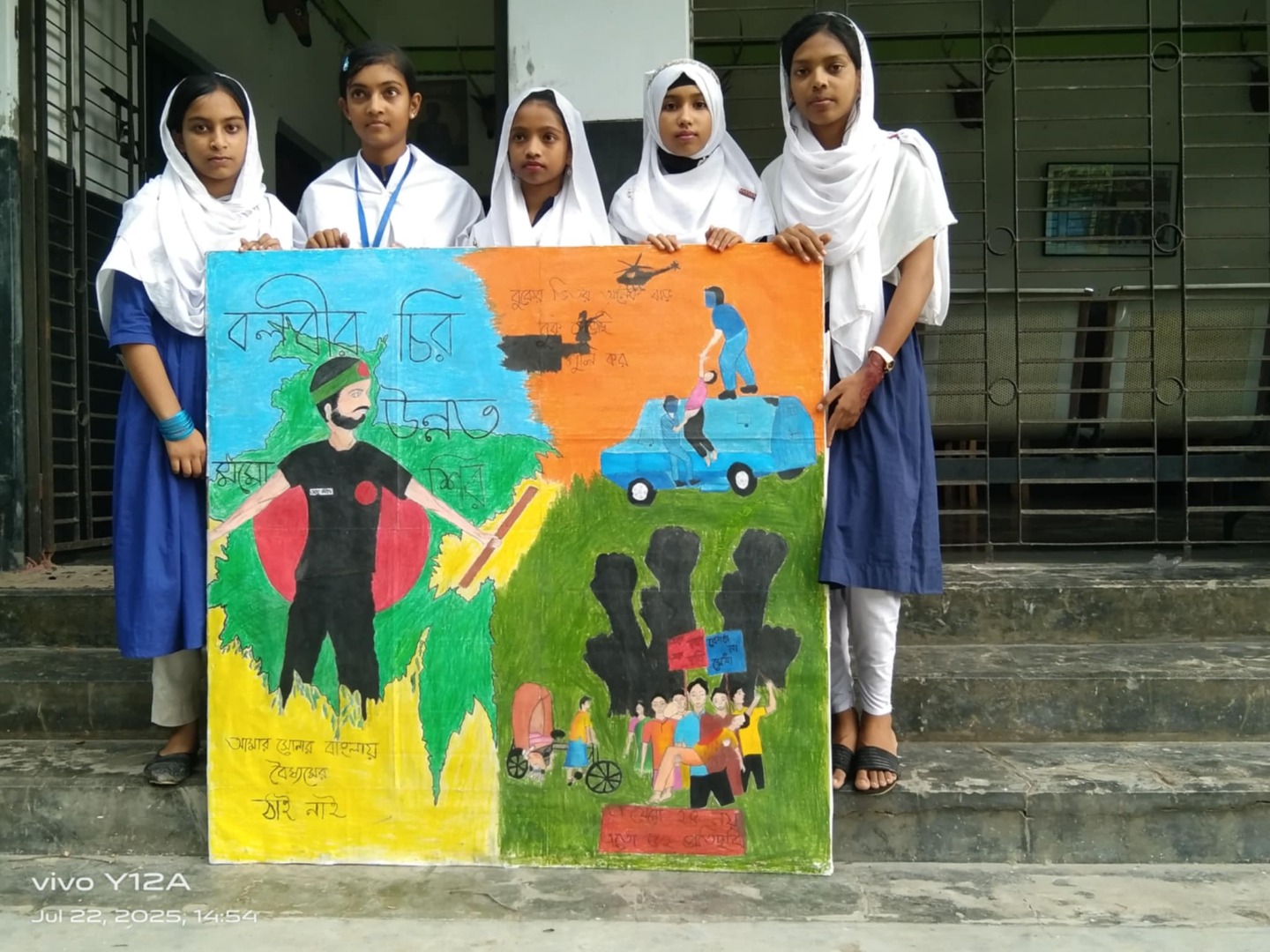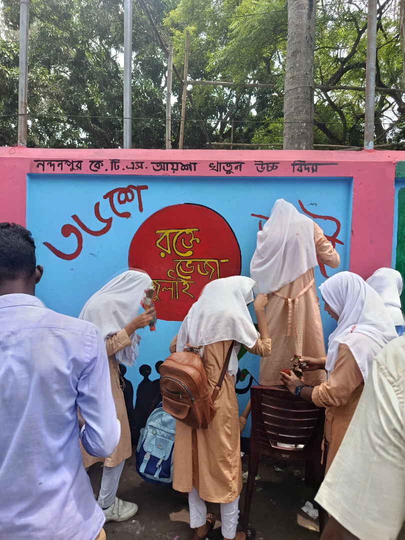জুলাই গণভ্যুত্থান বর্ষপূর্তি পালন উপলক্ষে আয়োজিত “২৪ এররঙে গ্রাফিতি ও চিত্রাংকন” এর স্থিরচিত্র শক্রজিৎপুর আব্দল গনি মাধ্যমিক বালিকা উচ্চ বিদ্যালয় |