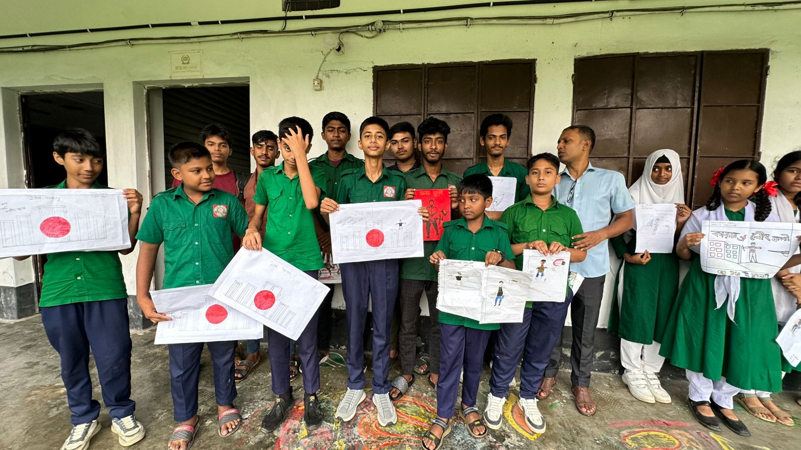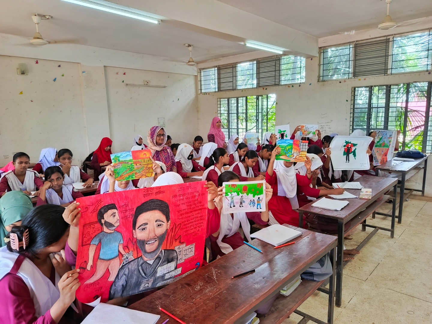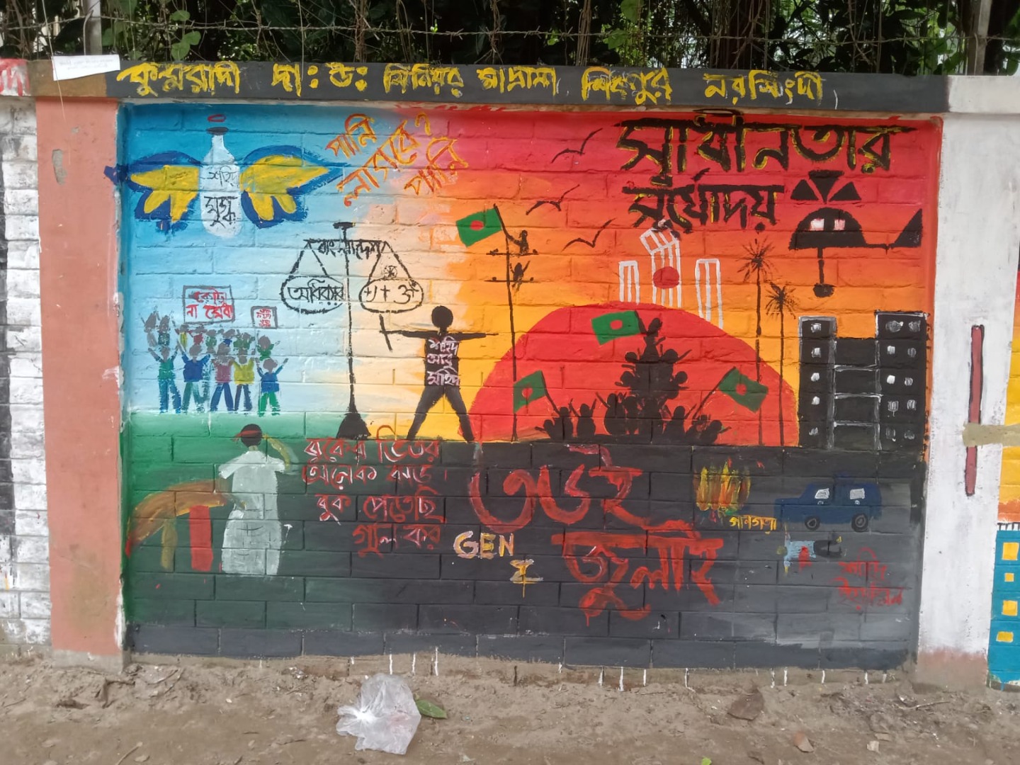 জুলাই গণভ্যুত্থান বর্ষপূর্তি পালন উপলক্ষে আয়োজিত “২৪ এররঙে গ্রাফিতি ও চিত্রাংকন” এর স্থিরচিত্র শক্রজিৎপুর আব্দল গনি মাধ্যমিক বালিকা উচ্চ বিদ্যালয় |