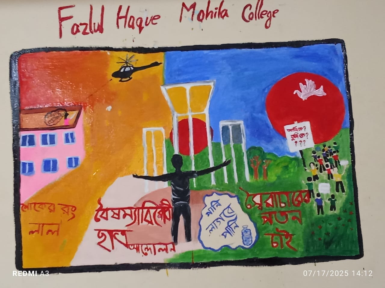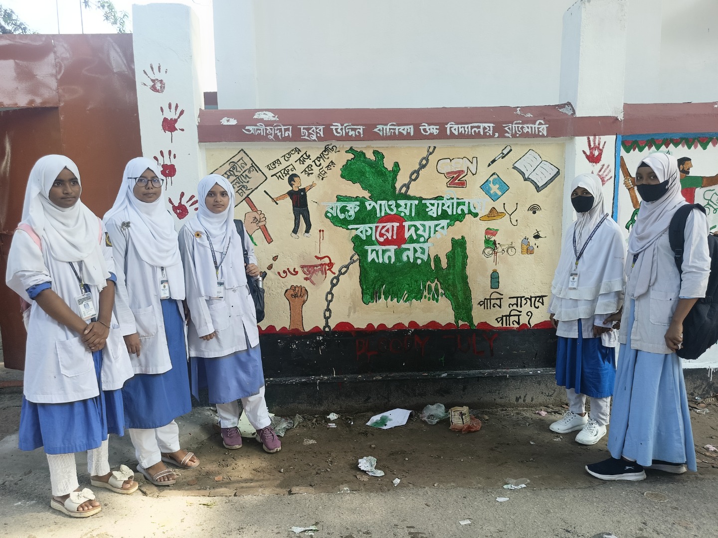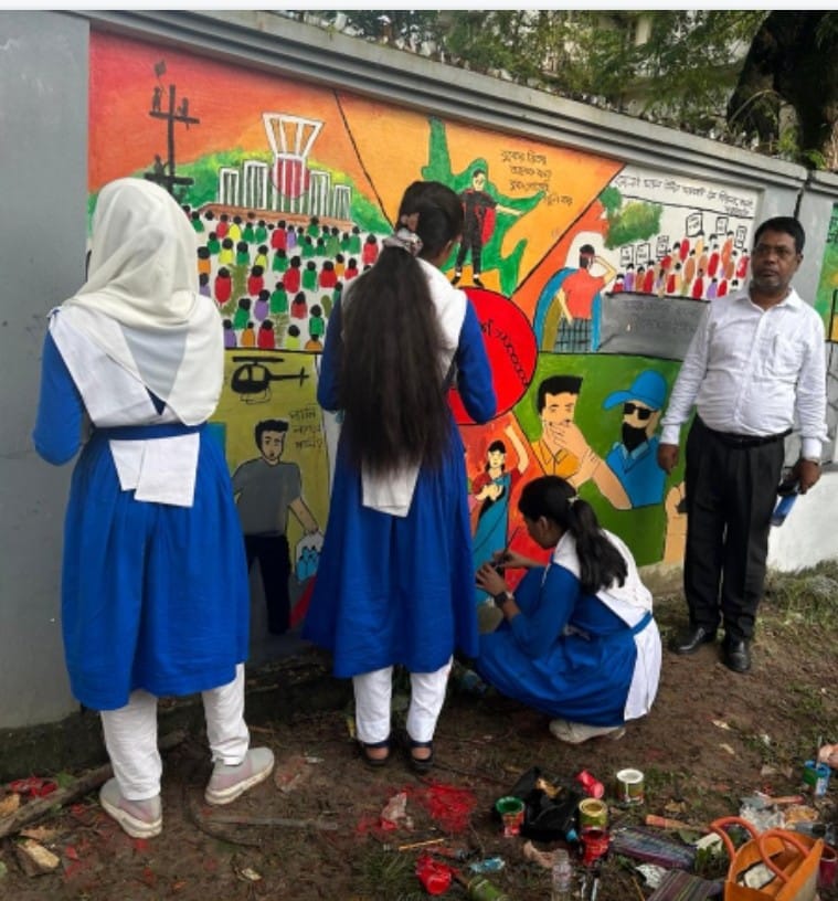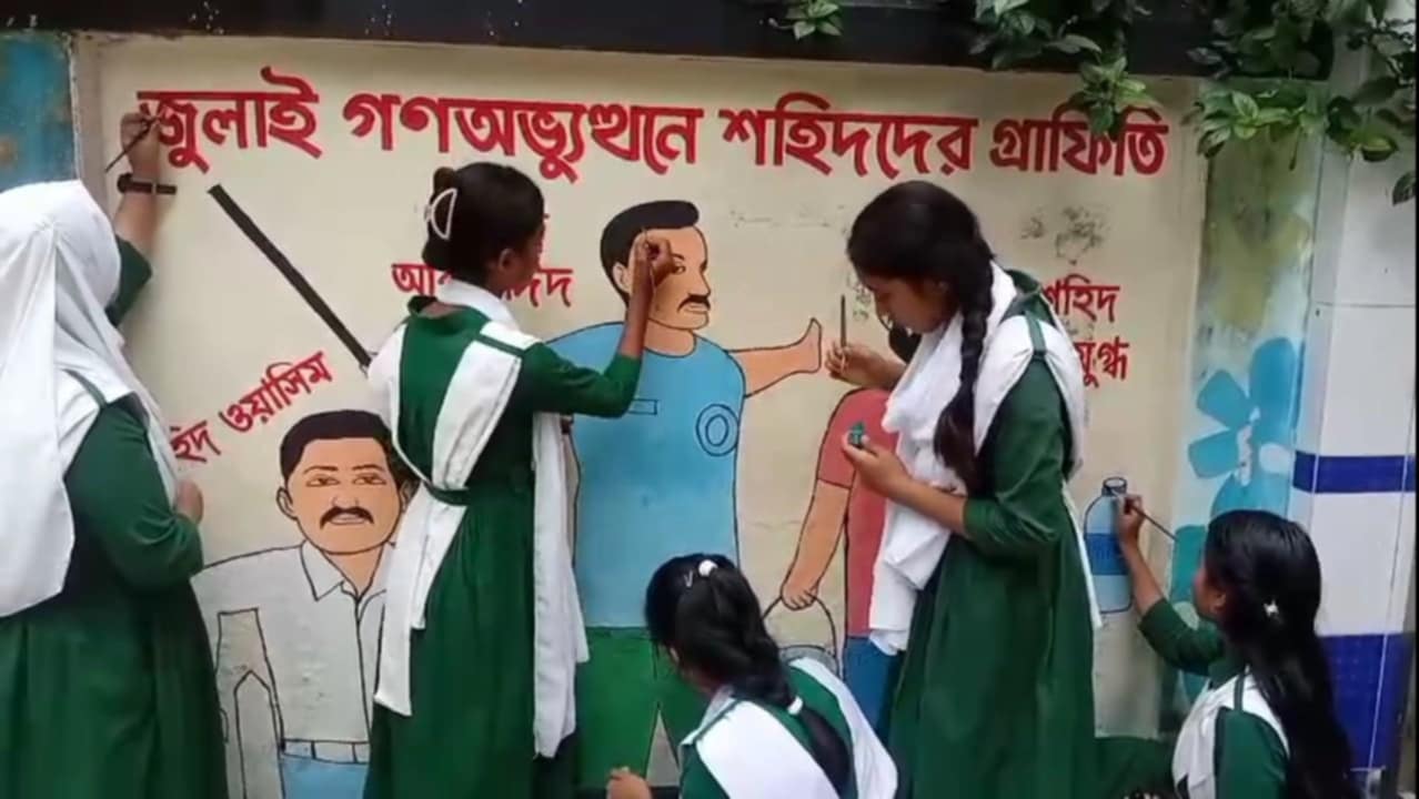 জুলাই গণভ্যুত্থান বর্ষপূর্তি পালন উপলক্ষে আয়োজিত “২৪ এররঙে গ্রাফিতি ও চিত্রাংকন” এর স্থিরচিত্র আলীমুদ্দিন ছবুর উদ্দিন বালিকা উচ্চ বিদ্যালয়
