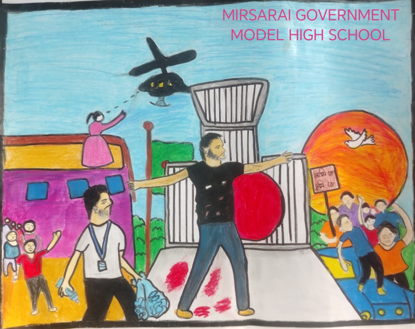 জুলাই গণভ্যুত্থান বর্ষপূর্তি পালন উপলক্ষে আয়োজিত “২৪ এররঙে গ্রাফিতি ও চিত্রাংকন” এর স্থিরচিত্র মীরসরাই সরকারি মডেল উচ্চ বিদ্যালয় |