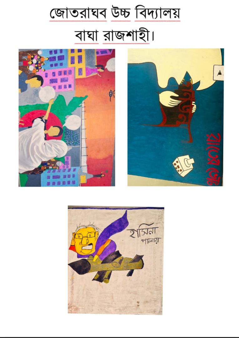 জুলাই গণভ্যুত্থান বর্ষপূর্তি পালন উপলক্ষে আয়োজিত “২৪ এররঙে গ্রাফিতি ও চিত্রাংকন” এর স্থিরচিত্র জোতরাঘব উচ্চ বিদ্যালয়, বাঘা, রাজশাহী |