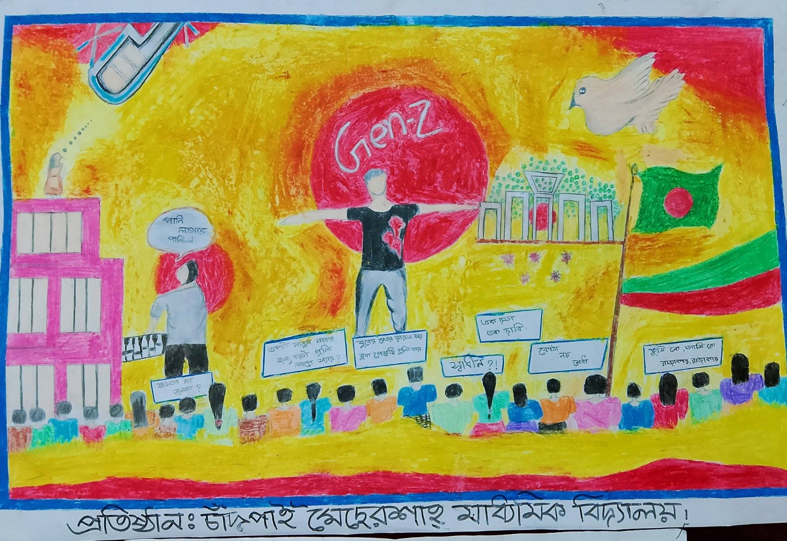 জুলাই গণভ্যুত্থান বর্ষপূর্তি পালন উপলক্ষে আয়োজিত “২৪ এররঙে গ্রাফিতি ও চিত্রাংকন” এর স্থিরচিত্র চুপাইর বালিকা উচ্চ বিদ্যালয় |