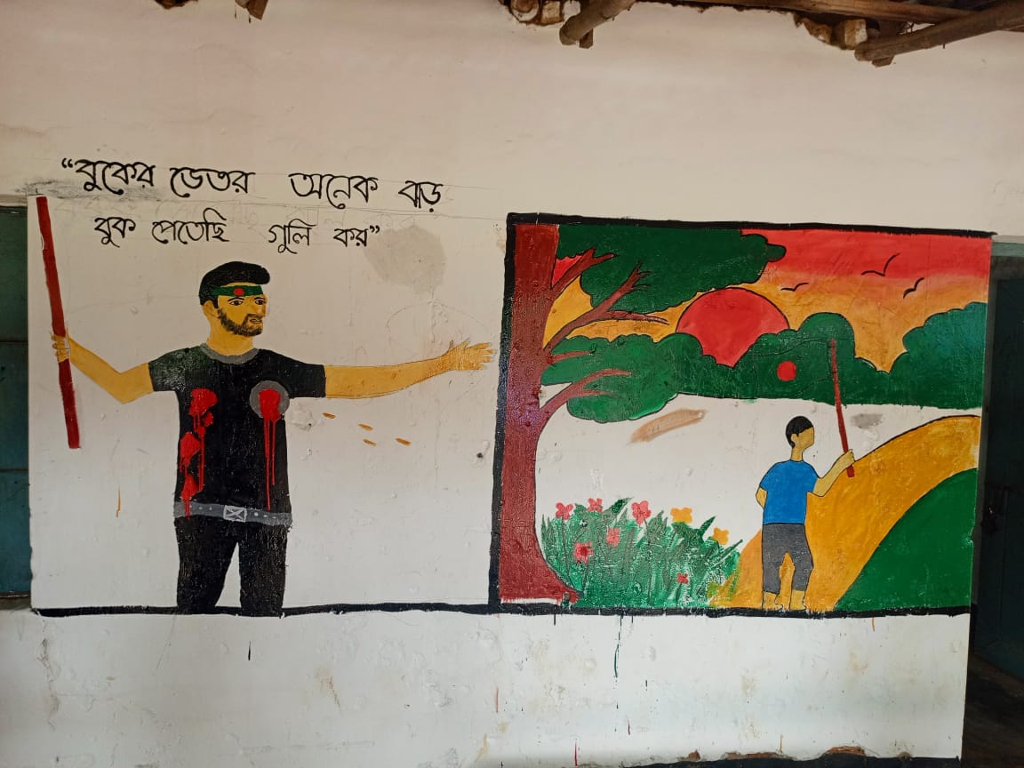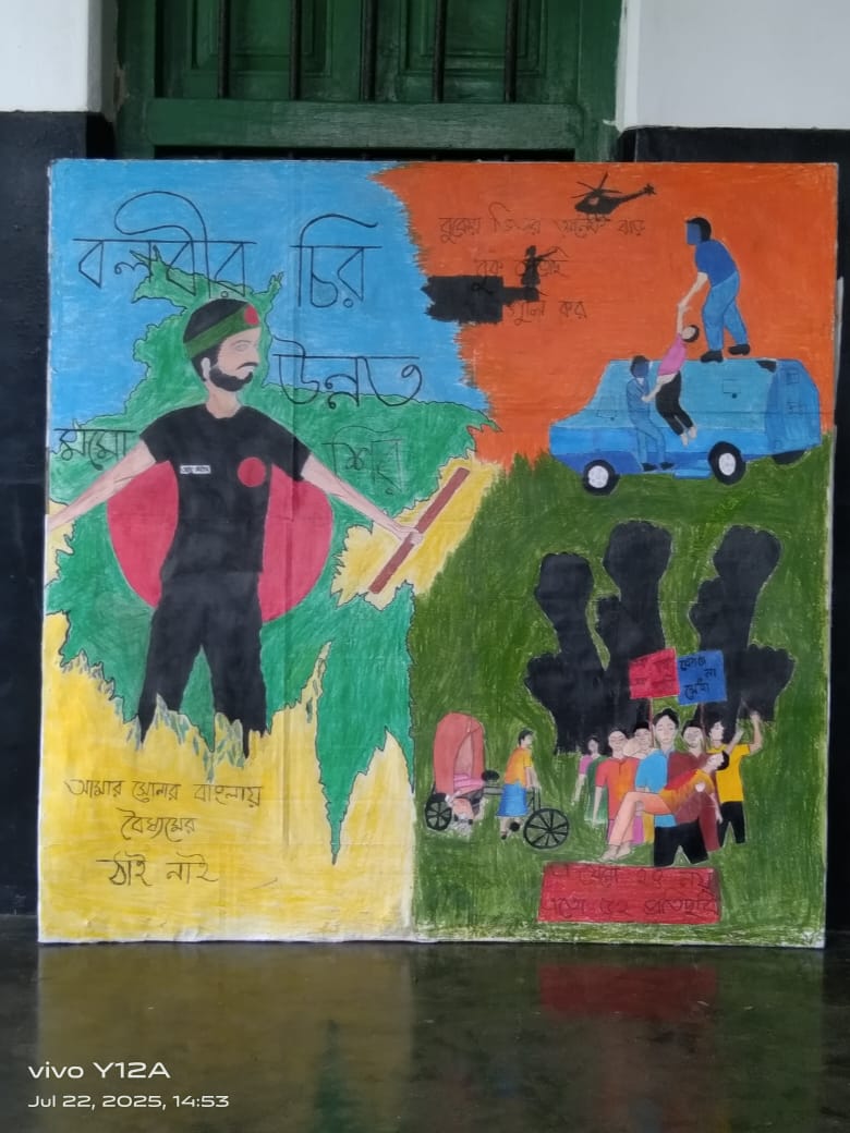 জুলাই গণভ্যুত্থান বর্ষপূর্তি পালন উপলক্ষে আয়োজিত “২৪ এররঙে গ্রাফিতি ও চিত্রাংকন” এর স্থিরচিত্র বনমালীপুর জনতা উচ্চ বিদ্যালয় |