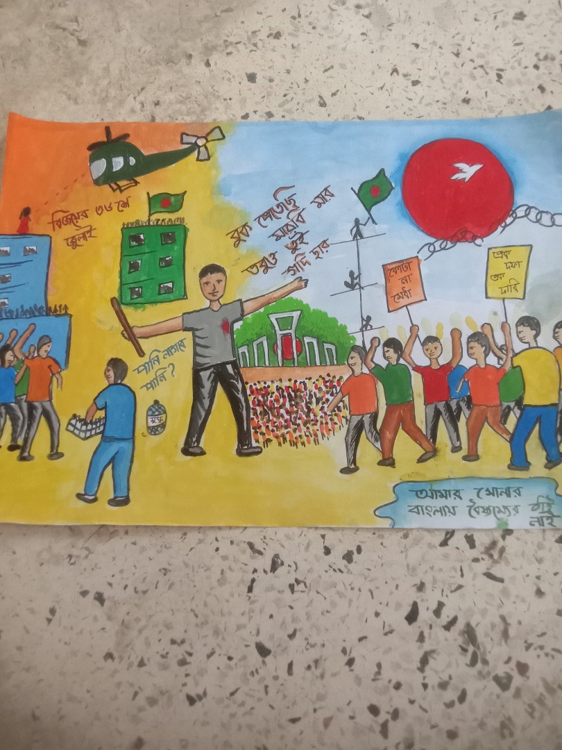 জুলাই গণভ্যুত্থান বর্ষপূর্তি পালন উপলক্ষে আয়োজিত “২৪ এররঙে গ্রাফিতি ও চিত্রাংকন” এর স্থিরচিত্র বেঙ্গলী মিডিয়াম হাই স্কুল |