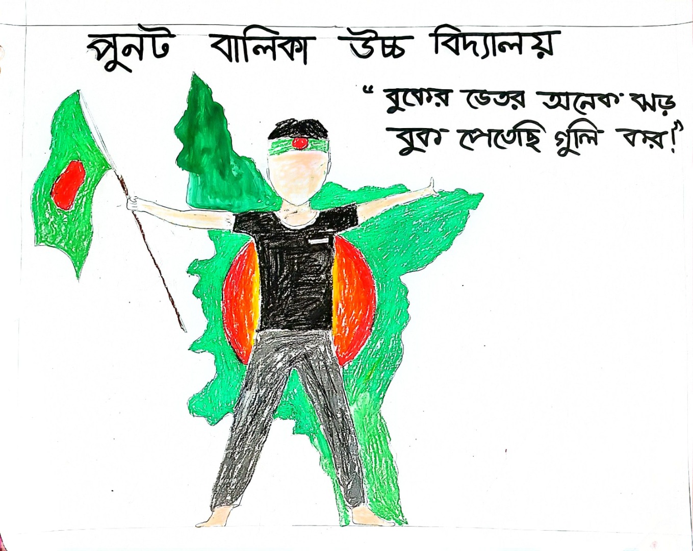 জুলাই গণভ্যুত্থান বর্ষপূর্তি পালন উপলক্ষে আয়োজিত “২৪ এররঙে গ্রাফিতি ও চিত্রাংকন” এর স্থিরচিত্র পুনট বালিকা উচ্চ বিদ্যালয় |