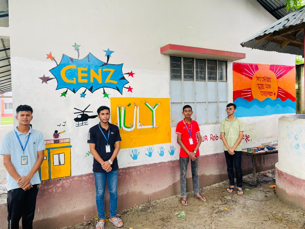 জুলাই গণভ্যুত্থান বর্ষপূর্তি পালন উপলক্ষে আয়োজিত “২৪ এর রঙে গ্রাফিতি ও চিত্রাংকন” এর স্থিরচিত্র সরকারি আব্দুল করিম সরকার করেজ, তানোর রাজশাহী |