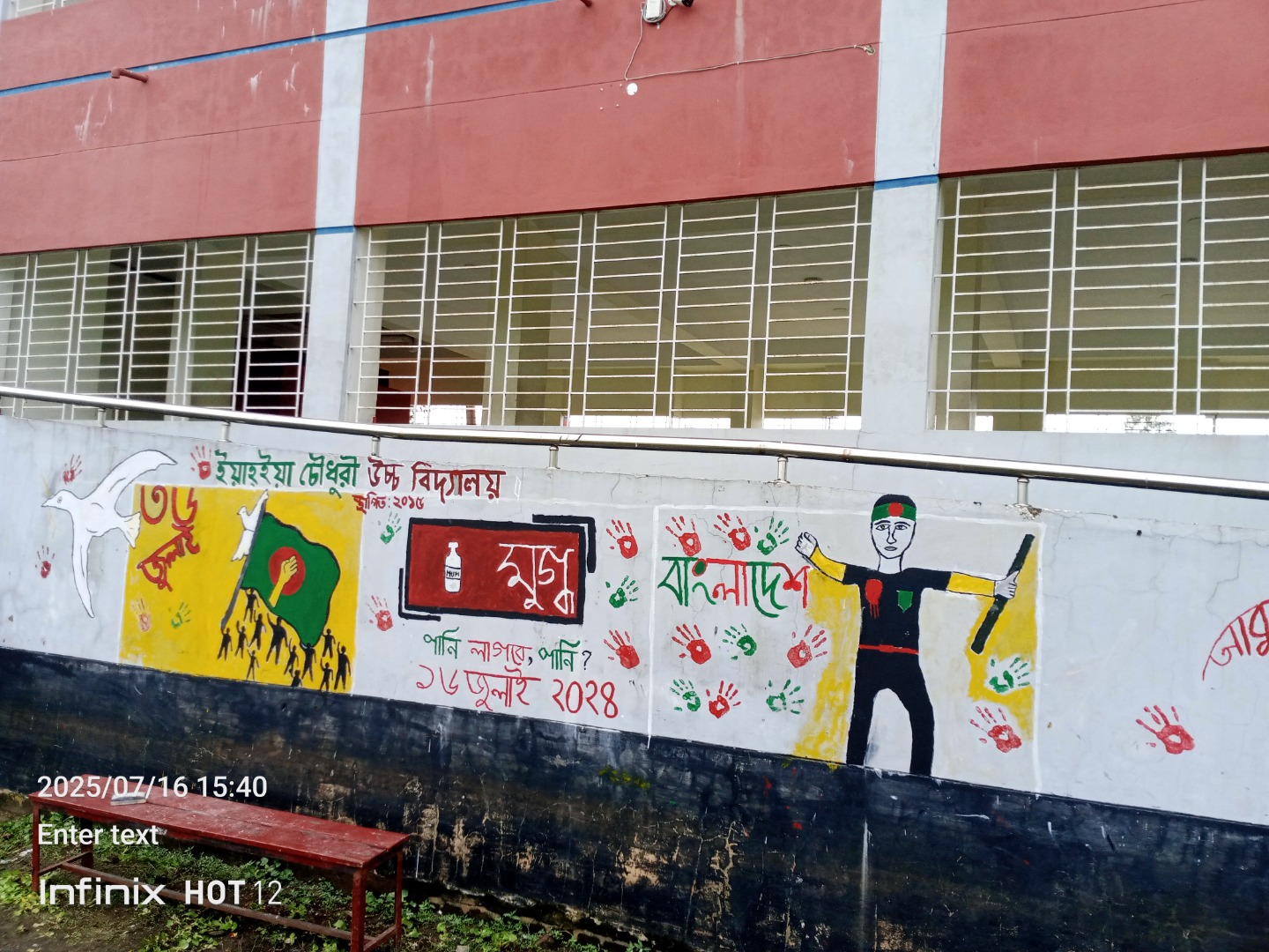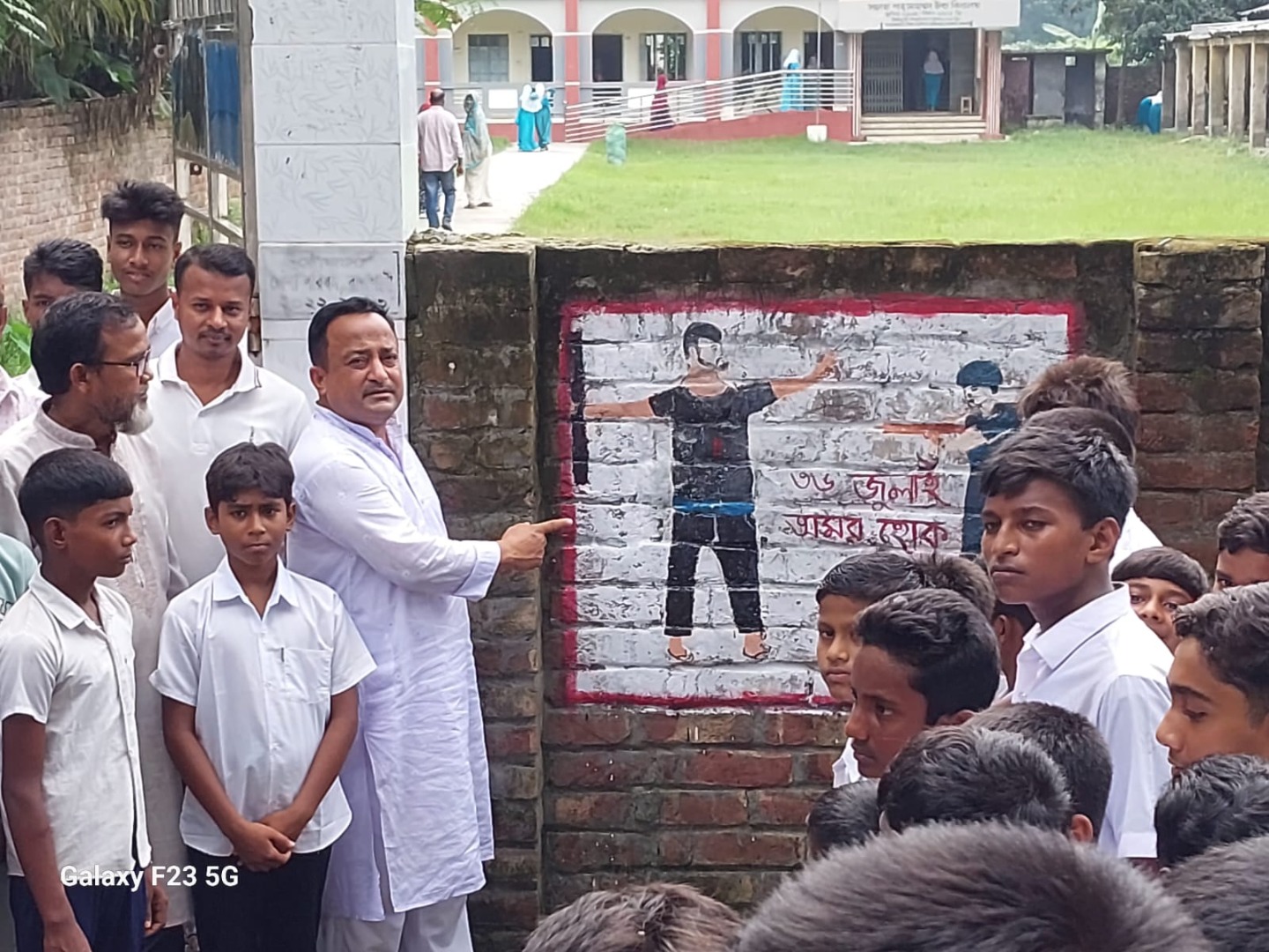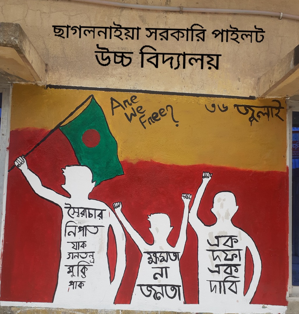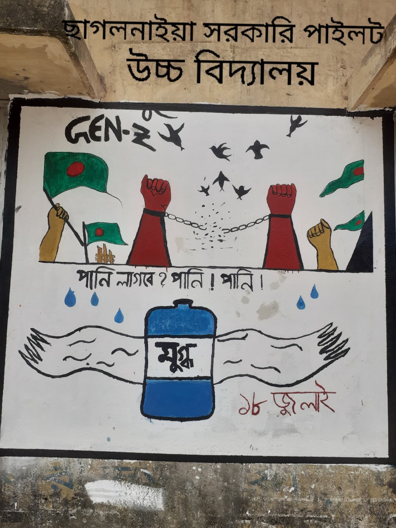 জুলাই গণভ্যুত্থান বর্ষপূর্তি পালন উপলক্ষে আয়োজিত “২৪ এর রঙে গ্রাফিতি ও চিত্রাংকন” এর স্থিরচিত্র ছাগলনাইয়া সরকারি পাইলট উচ্চ বিদ্যালয় |
