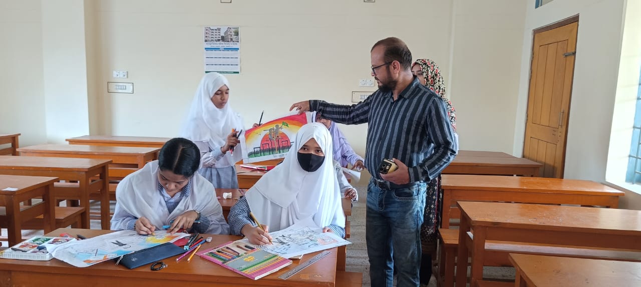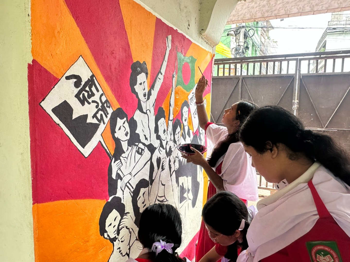 জুলাই গণভ্যুত্থান বর্ষপূর্তি পালন উপলক্ষে আয়োজিত “২৪ এর রঙে গ্রাফিতি ও চিত্রাংকন” এর স্থিরচিত্র সরকারি করোনেশন মাধ্যমিক বালিকা বিদ্যালয় |