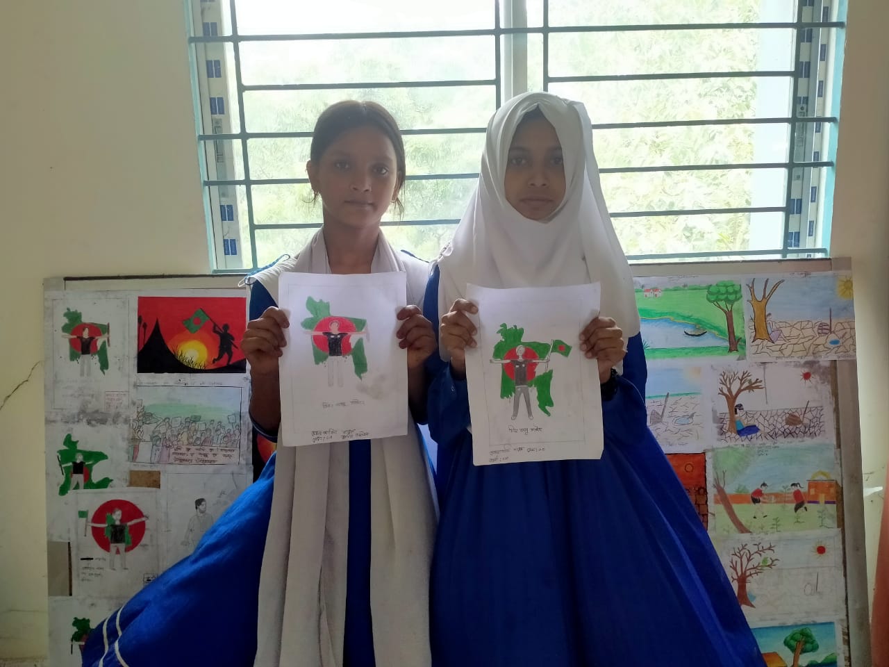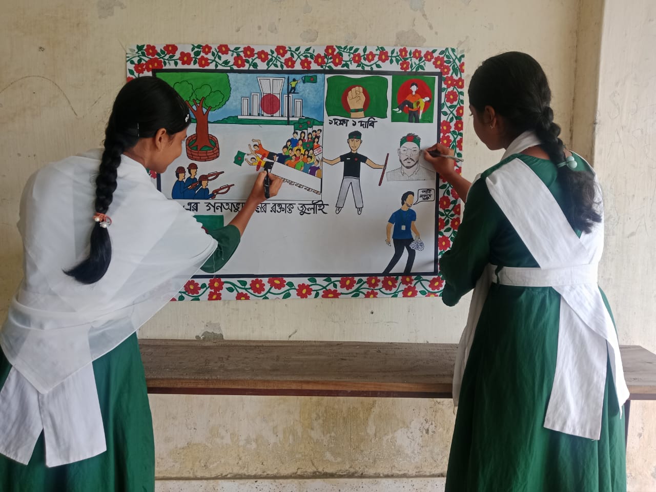 জুলাই গণভ্যুত্থান বর্ষপূর্তি পালন উপলক্ষে আয়োজিত “২৪ এর রঙে গ্রাফিতি ও চিত্রাংকন” এর স্থিরচিত্র চন্দনগাঁতী বালিকা উচ্চ বিদ্যালয়ে বেলকুচি, সিরাজগঞ্জ |