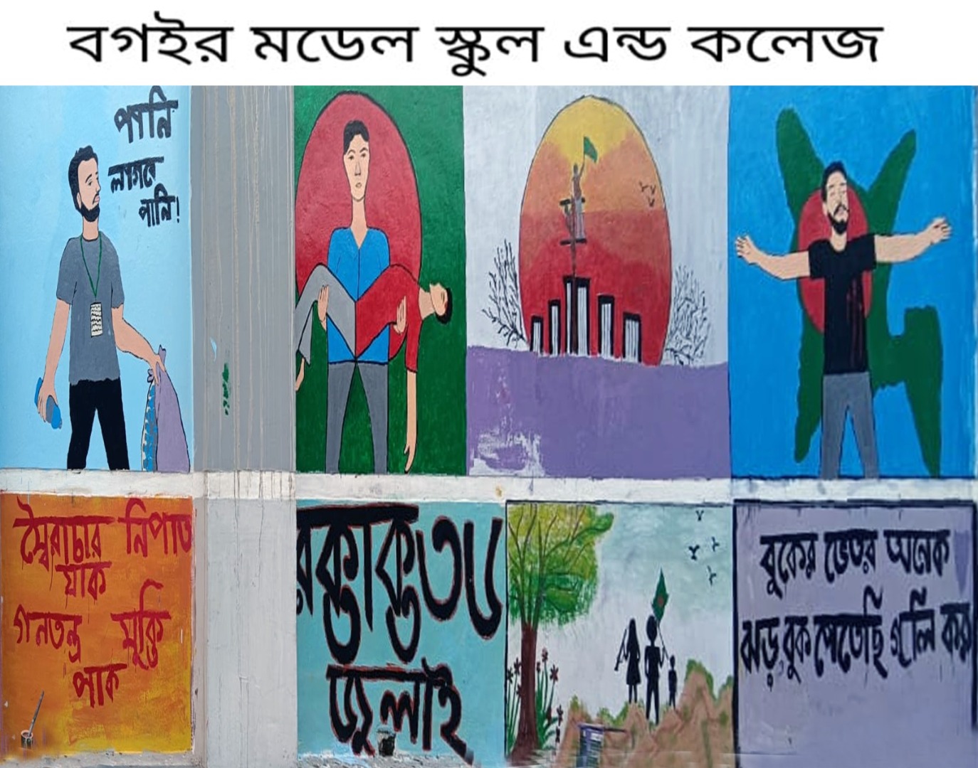 জুলাই গণভ্যুত্থান বর্ষপূর্তি পালন উপলক্ষে আয়োজিত “২৪ এর রঙে গ্রাফিতি ও চিত্রাংকন” এর স্থিরচিত্র সরকারি আইনউদ্দীন কলেজ, মধুখালী, ফরিদপুর