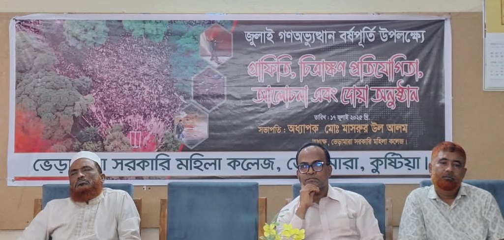 জুলাই গণঅভ্যুত্থান বর্ষপূতি উপলক্ষ্যে গ্রাফিতি, চিত্রাঙ্কণ প্রতিযোগিতা, আলোচনা এবং দোয়া অনুষ্ঠান ভেড়ামারা সরকারি মহিলা কলেজ, ভেড়ামারা, কুষ্টিয়া |