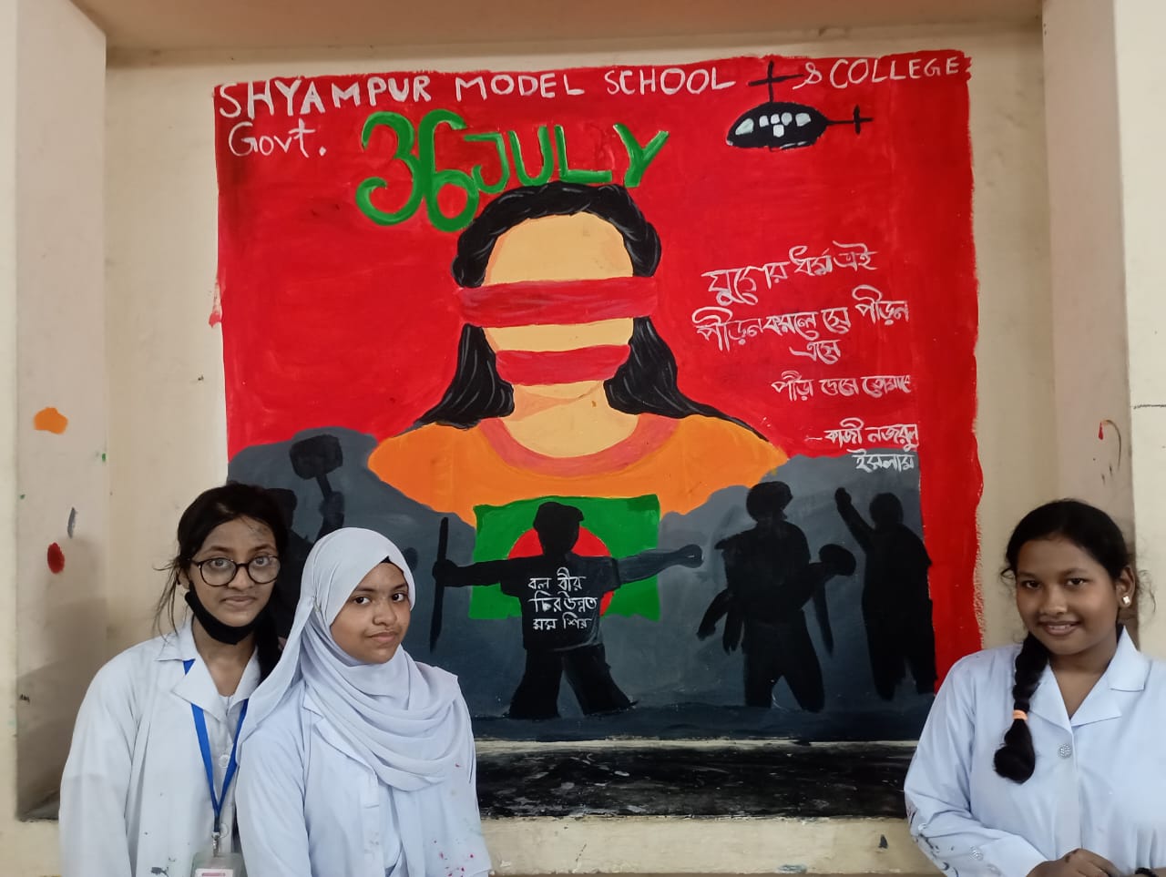 জুলাই গণভ্যুত্থান বর্ষপূর্তি পালন উপলক্ষে আয়োজিত “২৪ এর রঙে গ্রাফিতি ও চিত্রাংকন” এর স্থিরচিত্র শ্যামপুর সরকারি মডেল স্কুল এন্ড কলেজ, শ্যামপুর, কদমতলী, ঢাকা |